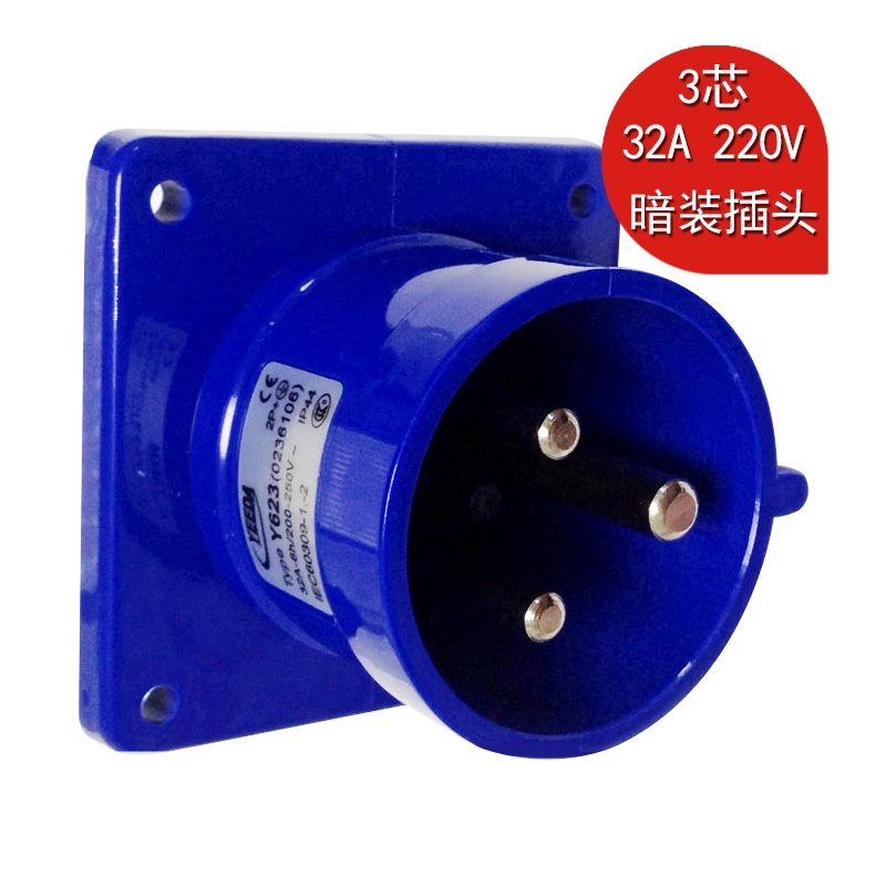 Yeeda怡达Y-623(0236106)IP44工业暗装反针插头单相三芯32A 220V
