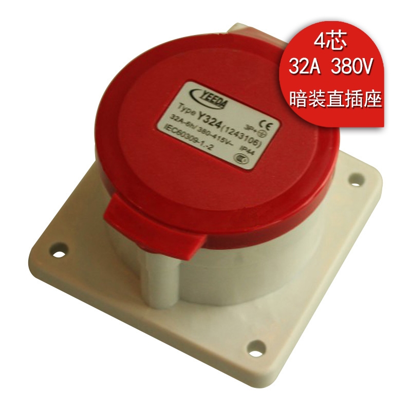 Yeeda怡达Y-324(1243106)IP44暗装直插座三相四芯32A 380V
