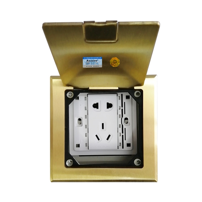 Aosens奥盛 120铜合金地面插座 六孔电源地插可装3个弱电 五孔电源 AS-DK-120