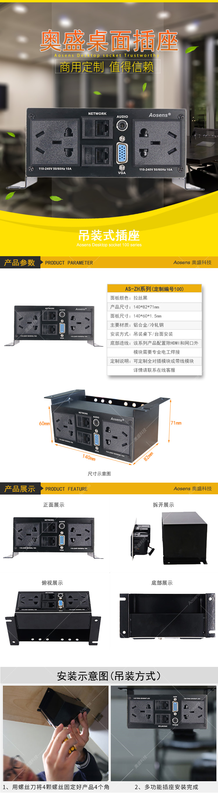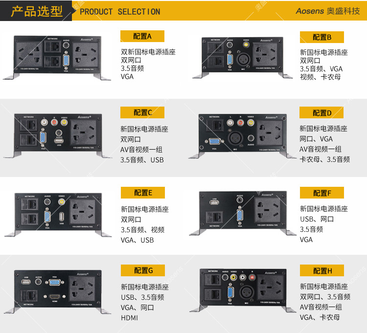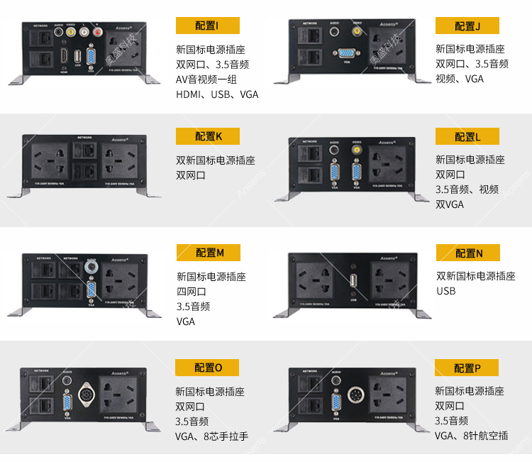 Aosens奥盛 会议台面吊装式插座 多媒体夹台式桌面插座 五孔电源 网络 3.5音频 HDMI AV音视频 USB VGA AS-ZH-100I