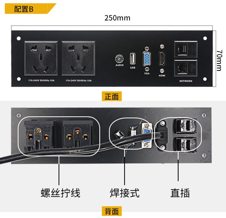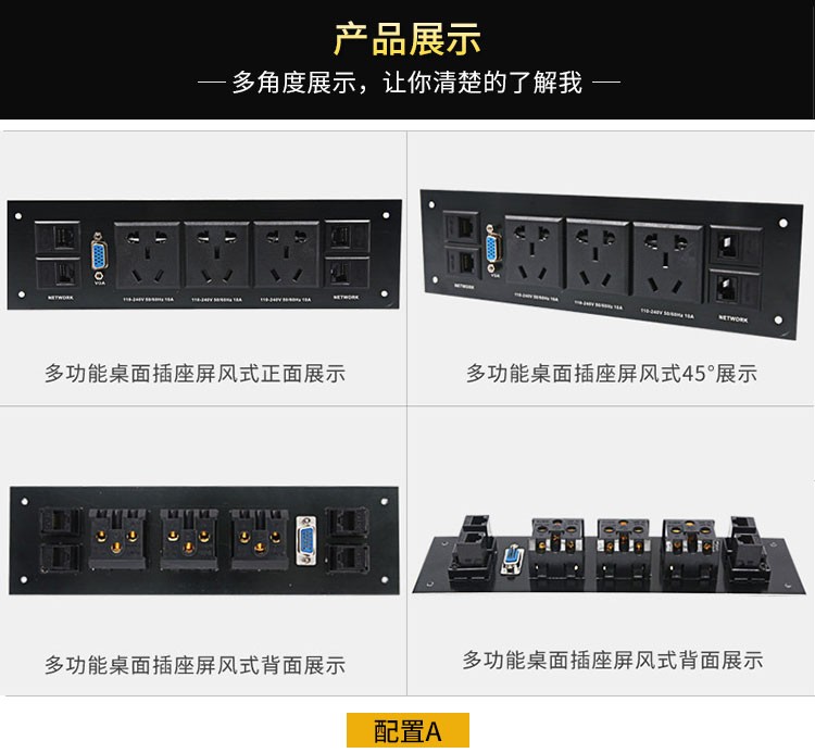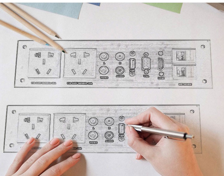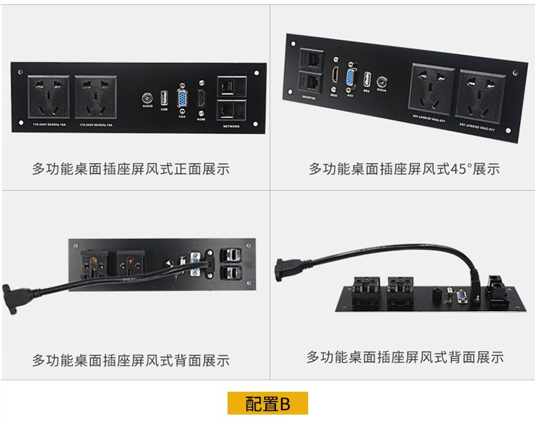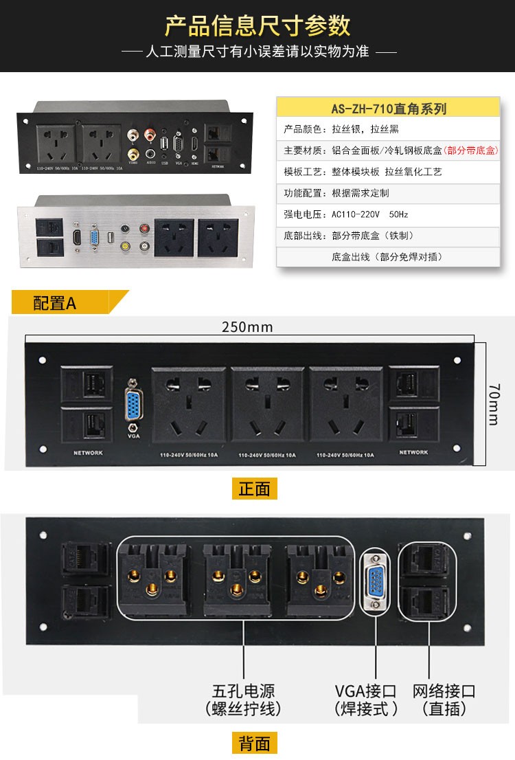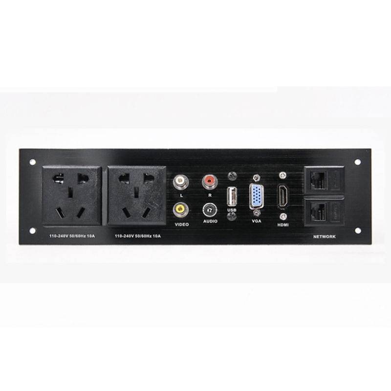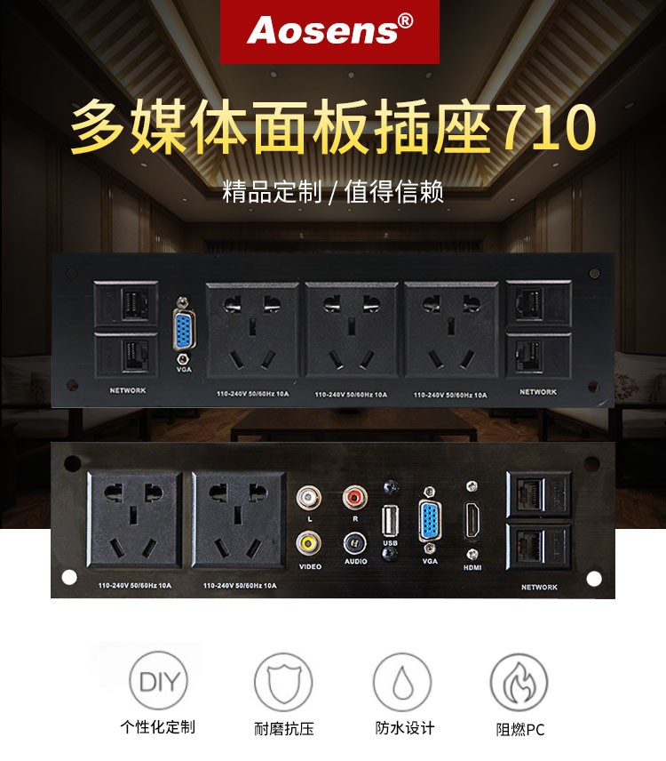 Aosens奥盛 多媒体面板插座 酒店桌面台面插座 莲花音视频 五孔电源 3.5音频 USB HDMI 网络 VGA AS-ZH-710C