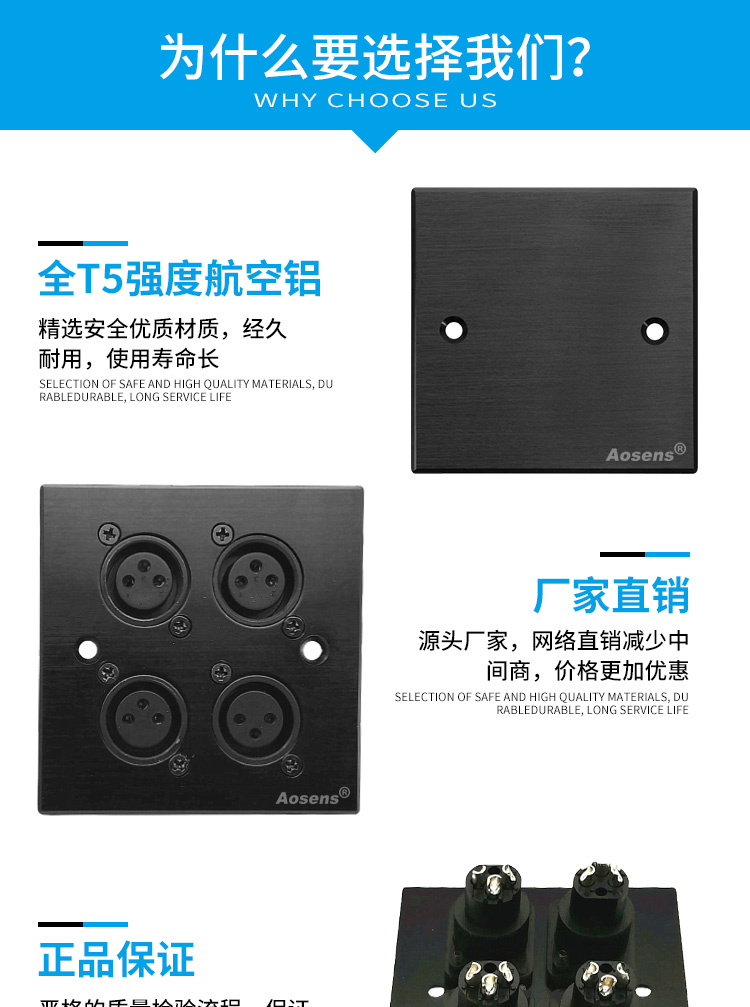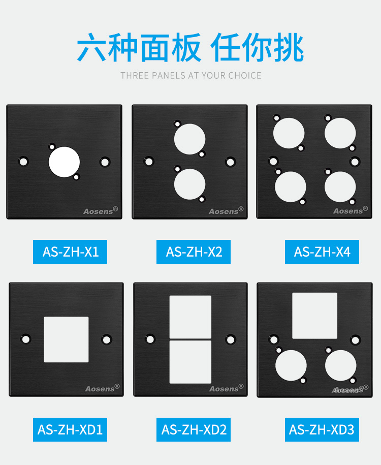 Aosens奥盛 86型多媒体铝合金面板 多功能插座面板 组合空白面板插座 金属面板插座 一孔