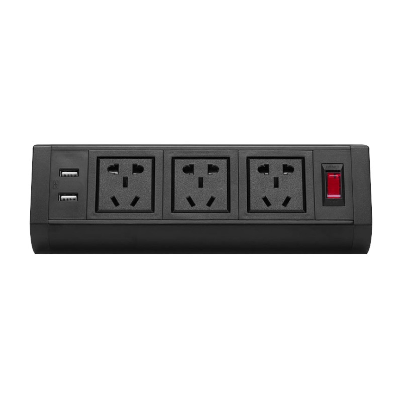 Aosens奥盛 夹台式会议桌面插座 铝合金材质支持定制 五孔电源 双USB 开关 8位弱电模块AS-ZH-100XE