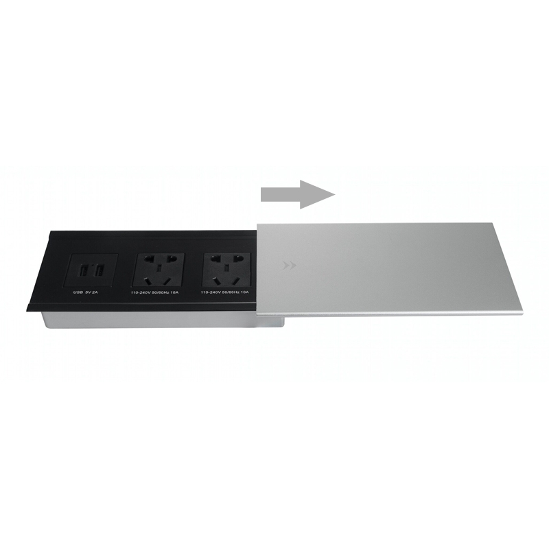 Aosens奥盛侧滑平推式桌面插座 多媒体铝合金拉丝办公桌插座 金属桌插 五孔电源 AS-ZH-800A