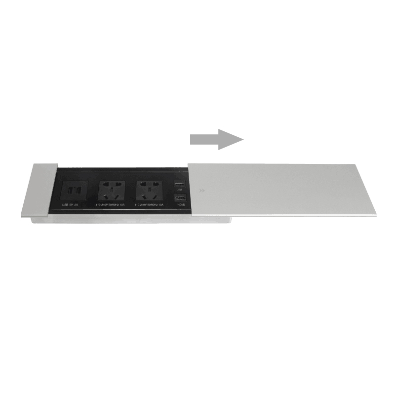 Aosens奥盛侧滑平推式桌面插座 多媒体铝合金拉丝办公桌插座 金属桌插 五孔电源 AS-ZH-800B