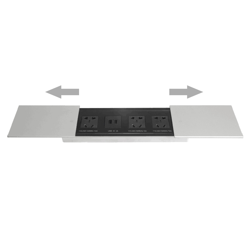 Aosens奥盛侧滑平推式桌面插座 多媒体铝合金拉丝办公桌插座 金属桌插 五孔电源 AS-ZH-800C