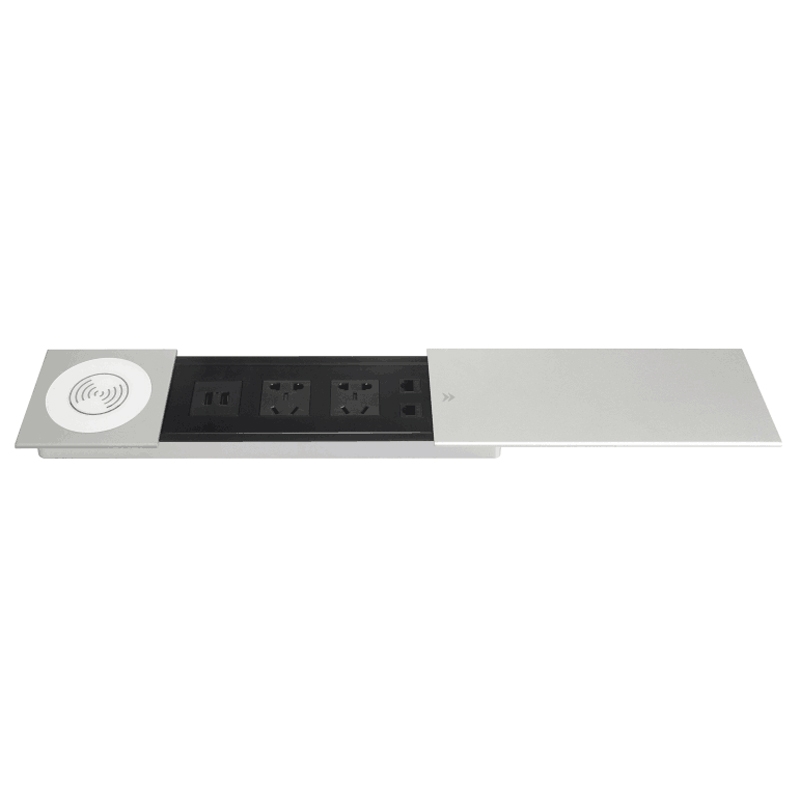 Aosens奥盛侧滑平推式桌面插座 多媒体铝合金拉丝办公桌插座 金属桌插 五孔电源 AS-ZH-800W