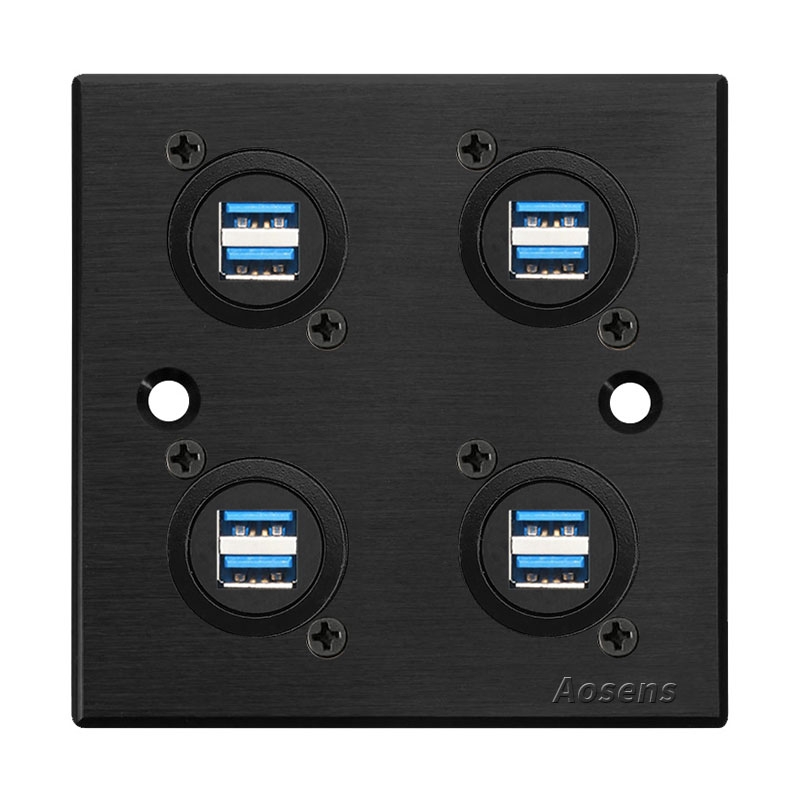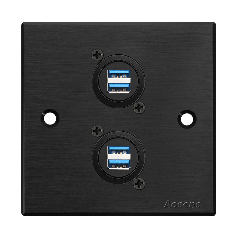 Aosens奥盛 双USB3.0对插数据D型模块86面板铝合金多媒体面板 五孔电源面板 支持定制 一位 二位 三位 四位面板