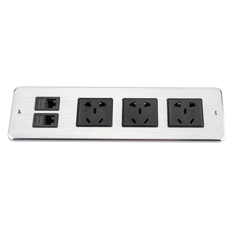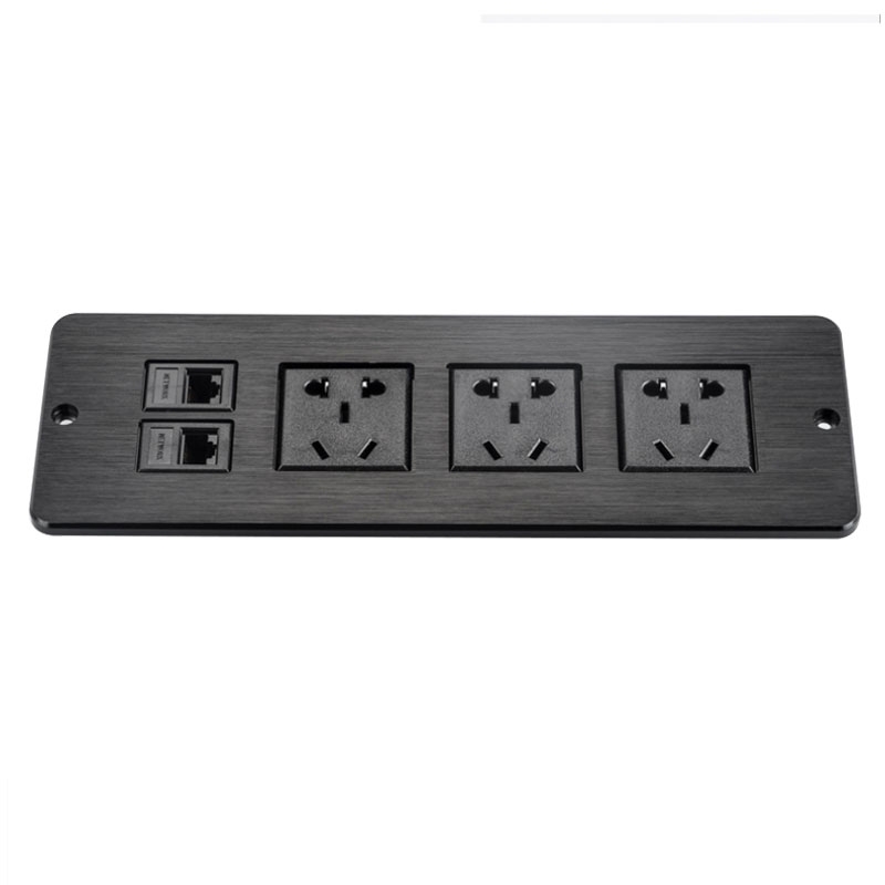 Aosens奥盛 铝合金多媒体面板台面插座支持定制 新国标五孔电源 双网络 AS-ZH-720C