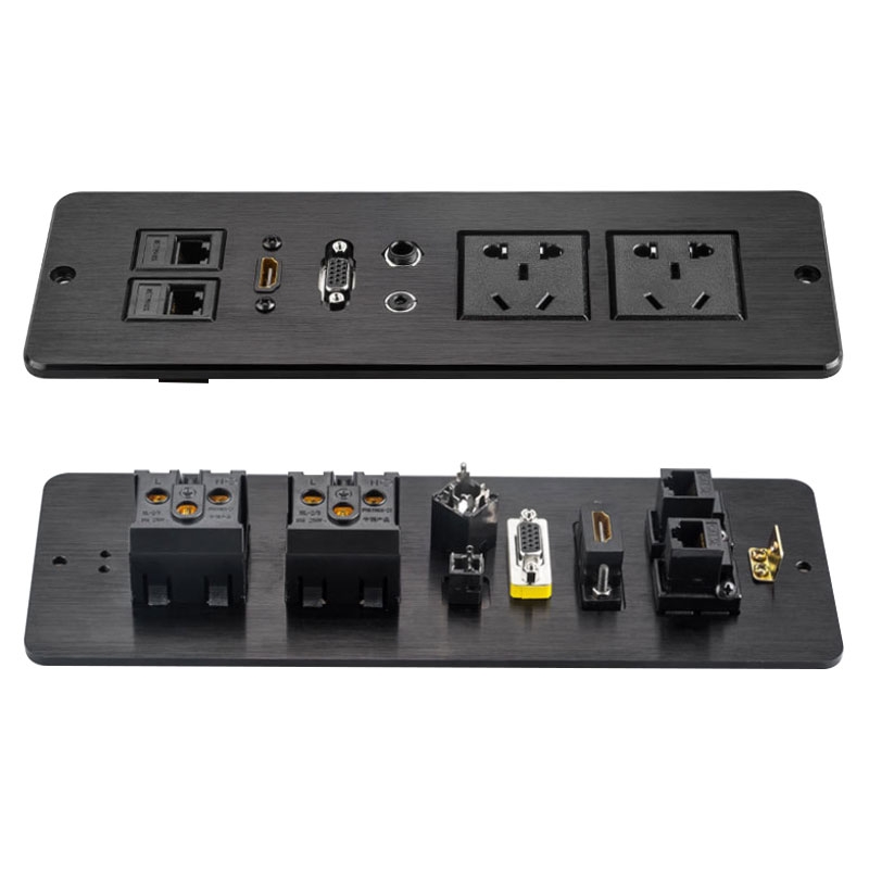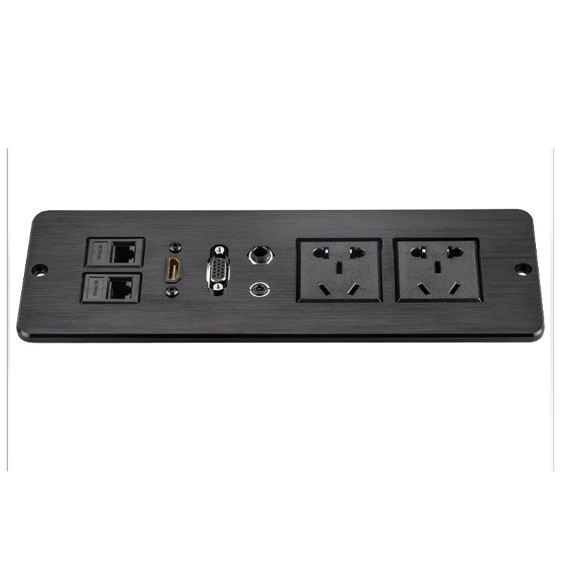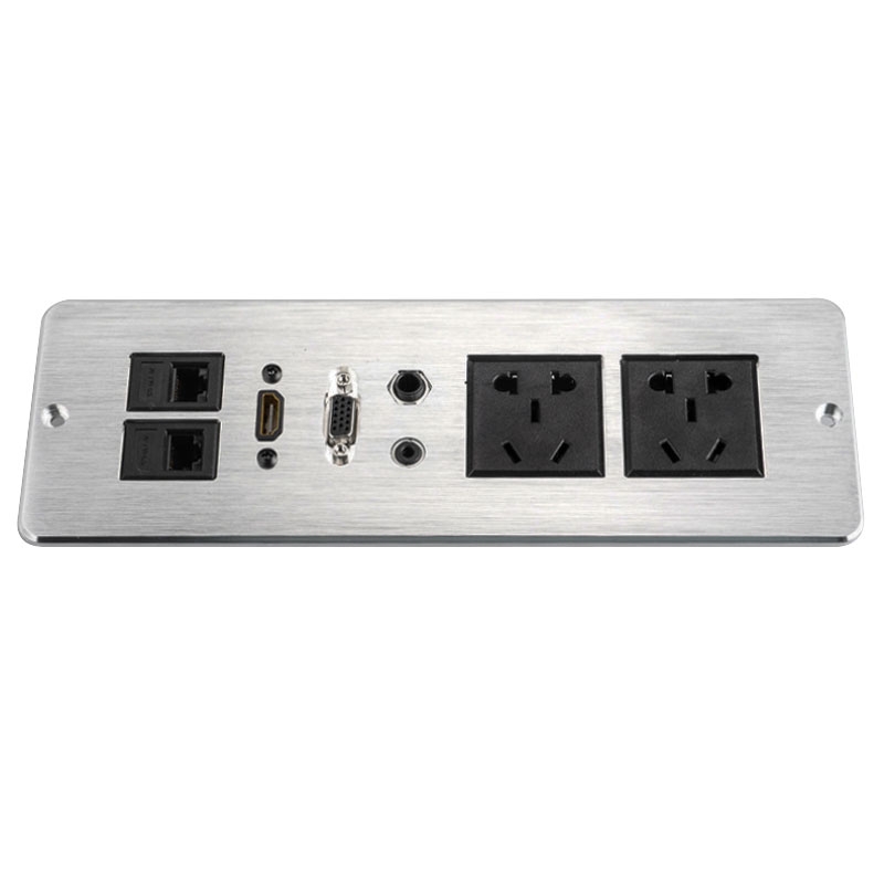 Aosens奥盛 铝合金多媒体面板台面插座支持定制 新国标五孔电源 双网络 VGA 3.5音视 视频 HDMI AS-ZH-720D