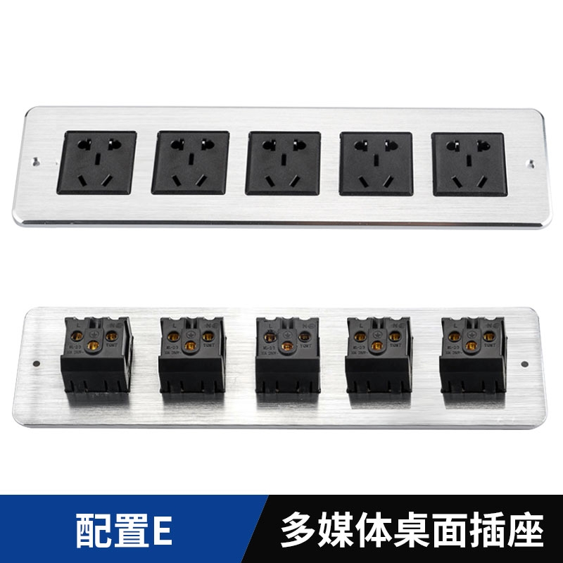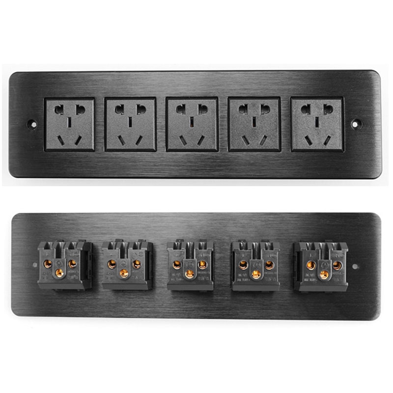 Aosens奥盛 铝合金多媒体面板台面插座支持定制 新国标五孔电源 AS-ZH-720E