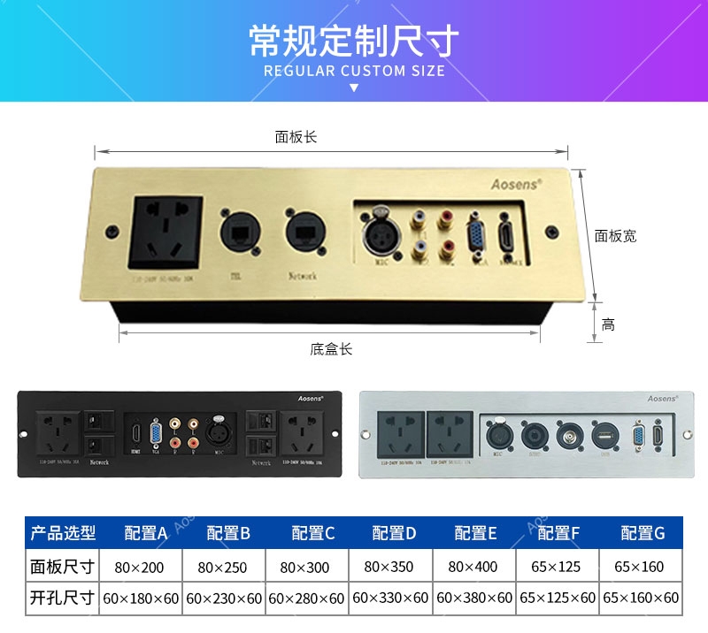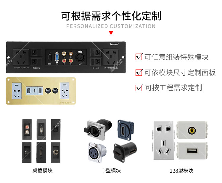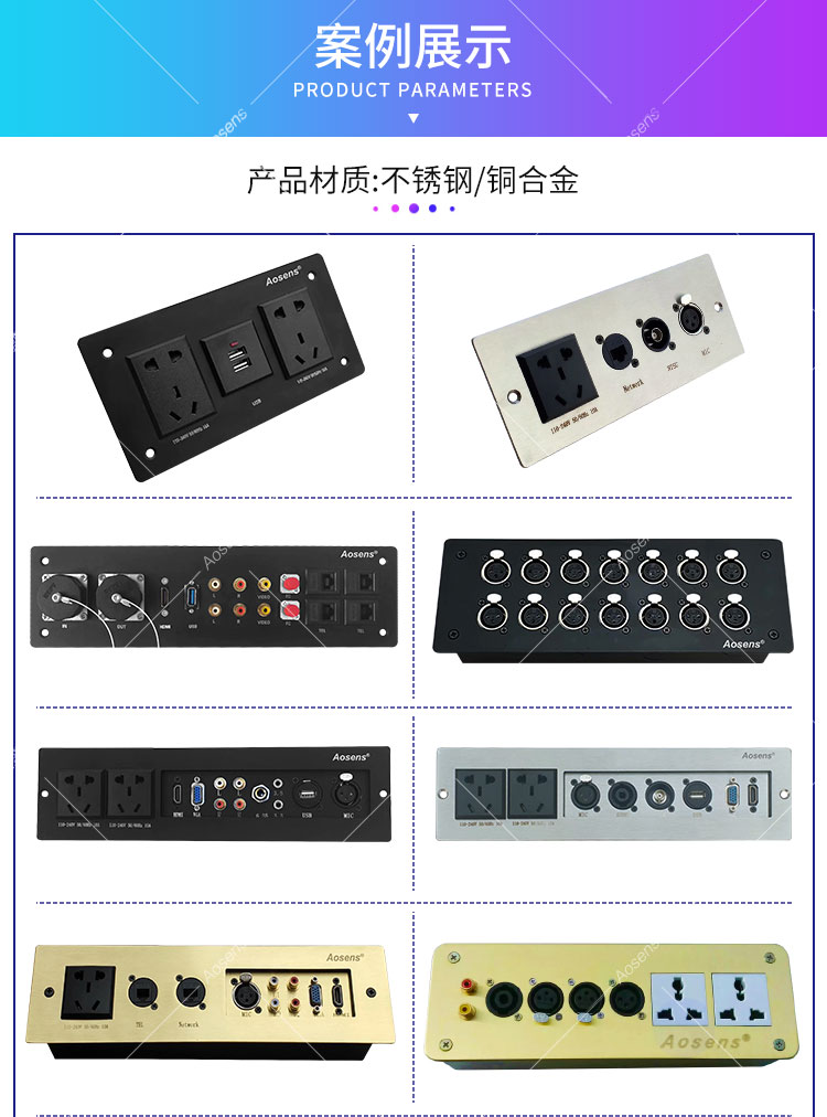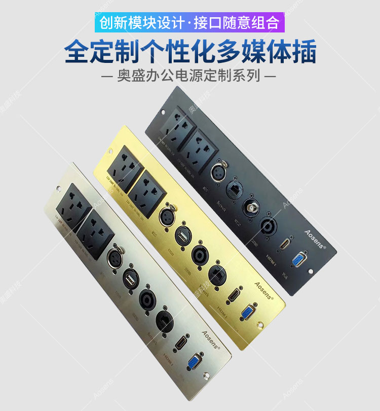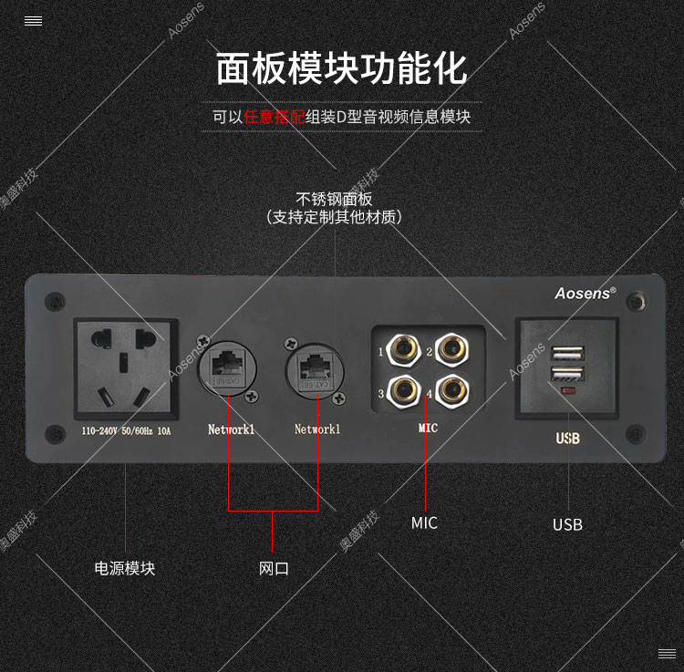 Aosens奥盛 定制不锈钢 铜合金多媒体面板 信息面板 墙面桌面 网络USB HDMI VGA卡侬 话筒