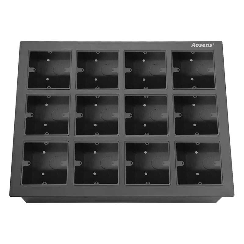 Aosens奥盛 不锈钢86面板D型音频信息盒多媒体墙面桌面插座不含模块12个86空架