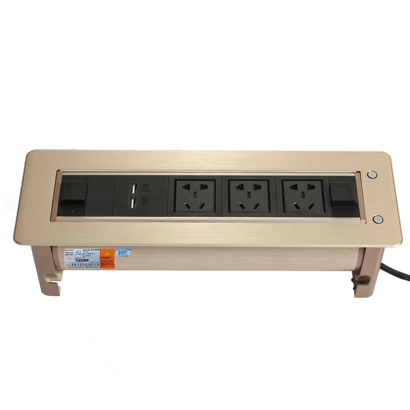 Aosens奥盛 电动翻转式桌面插座红外防夹自由组合模块带线输入 B款:五孔电源 双USB
