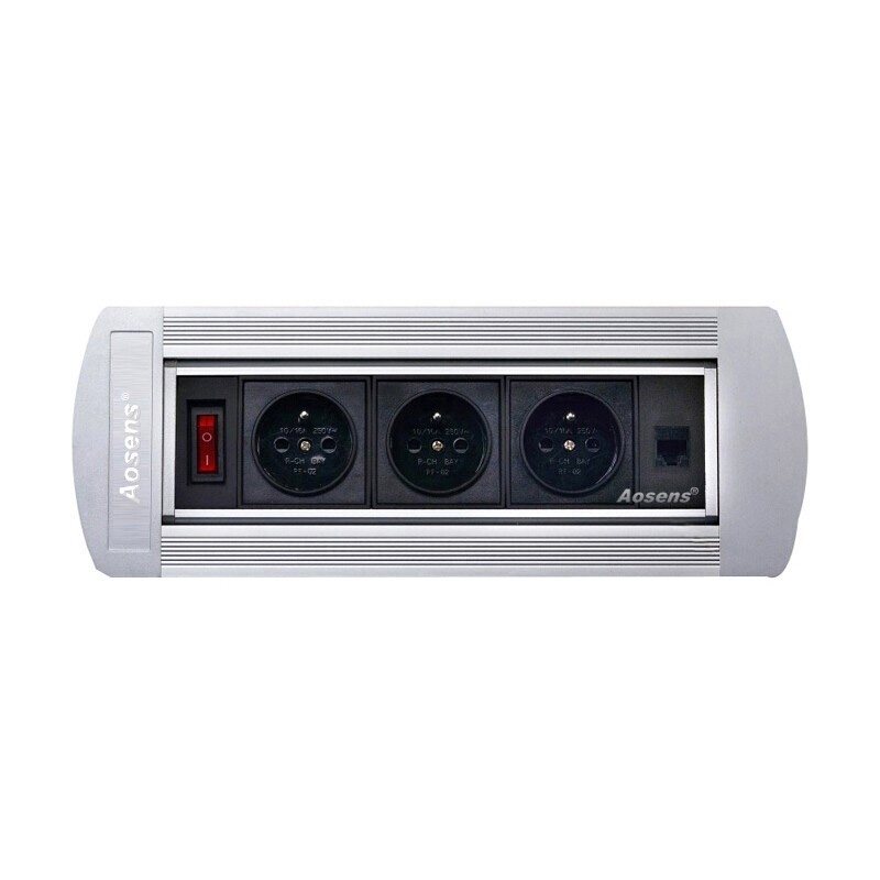 Aosens奥盛 办公手动翻转插座180度翻转会议桌面插座 电源 网络 开关 模块支持定制 AS-ZH-400B
