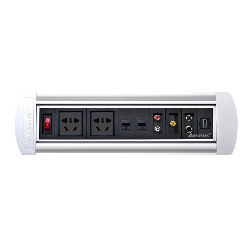 Aosens奥盛 办公手动翻转插座180度翻转会议桌面插座 五孔电源 网络 开关 3.5音频 HDMI 6.35话筒 模块支持定制 AS-ZH-400D