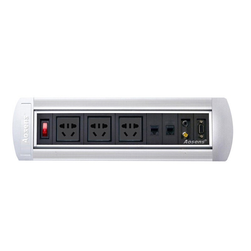 Aosens奥盛 办公手动翻转插座180度翻转会议桌面插座 五孔电源 网络 开关 3.5音频 VGA 模块支持定制 AS-ZH-400F