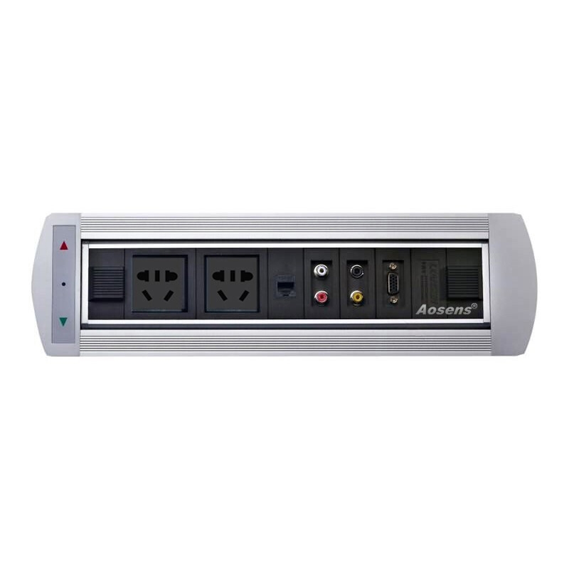 Aosens奥盛 办公电动翻转插座180度翻转会议桌面插座 五孔电源 网络 音视频 VGA 3.5音频 AS-ZH-001B
