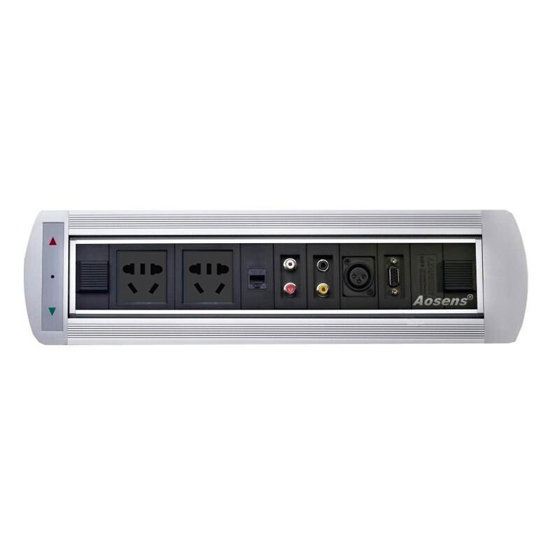 Aosens奥盛 办公电动翻转插座180度翻转会议桌面插座 五孔电源 网络 3.5音频 卡侬母 VGA AV音视频 AS-ZH-001E