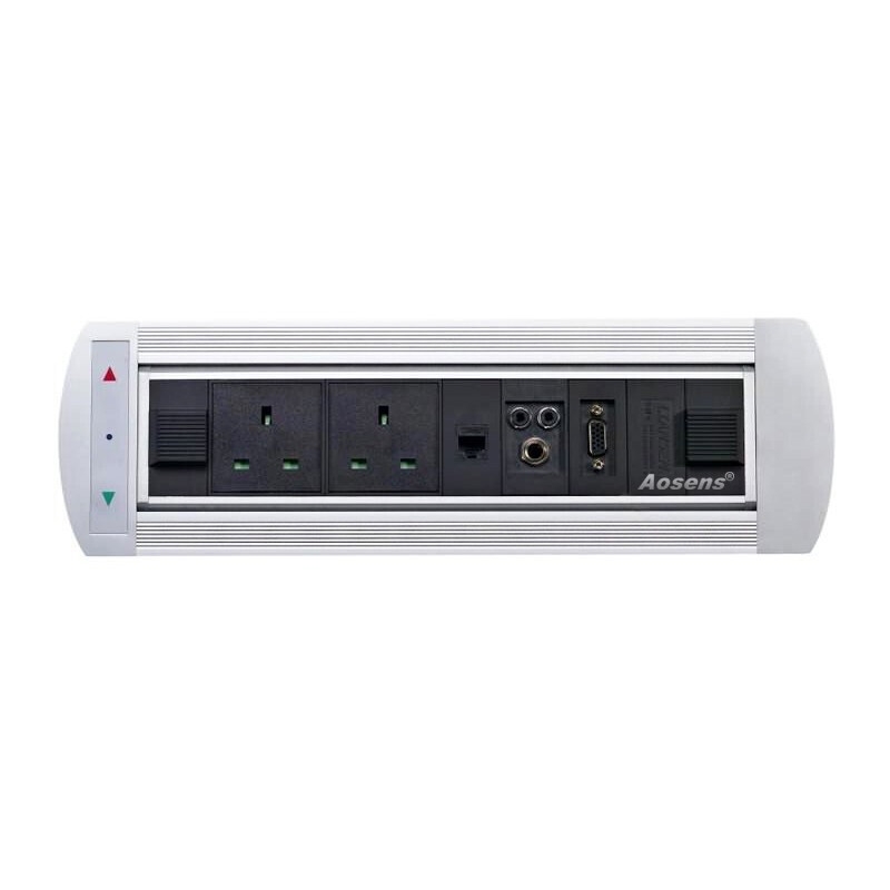 Aosens奥盛 办公电动翻转插座180度翻转会议桌面插座 五孔电源 网络 话筒 VGA AS-ZH-001I