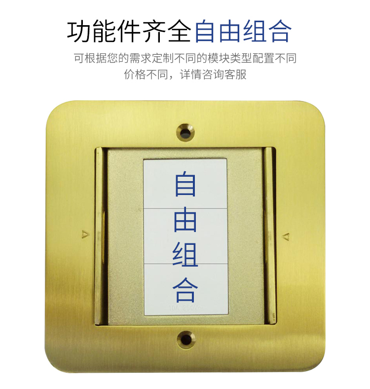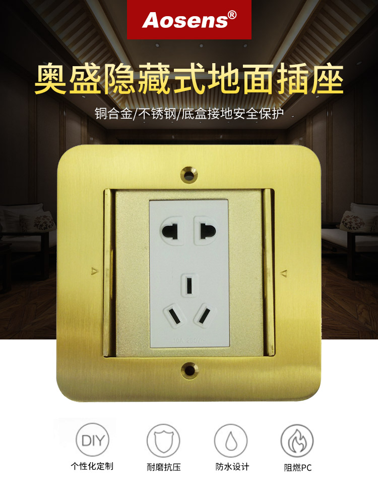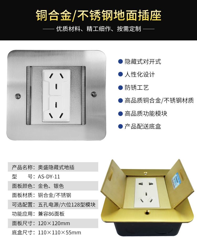 Aosens奥盛地插双门隐藏式 铜合金空架五孔地插 可装3位128模块 带底盒AS-DY-211