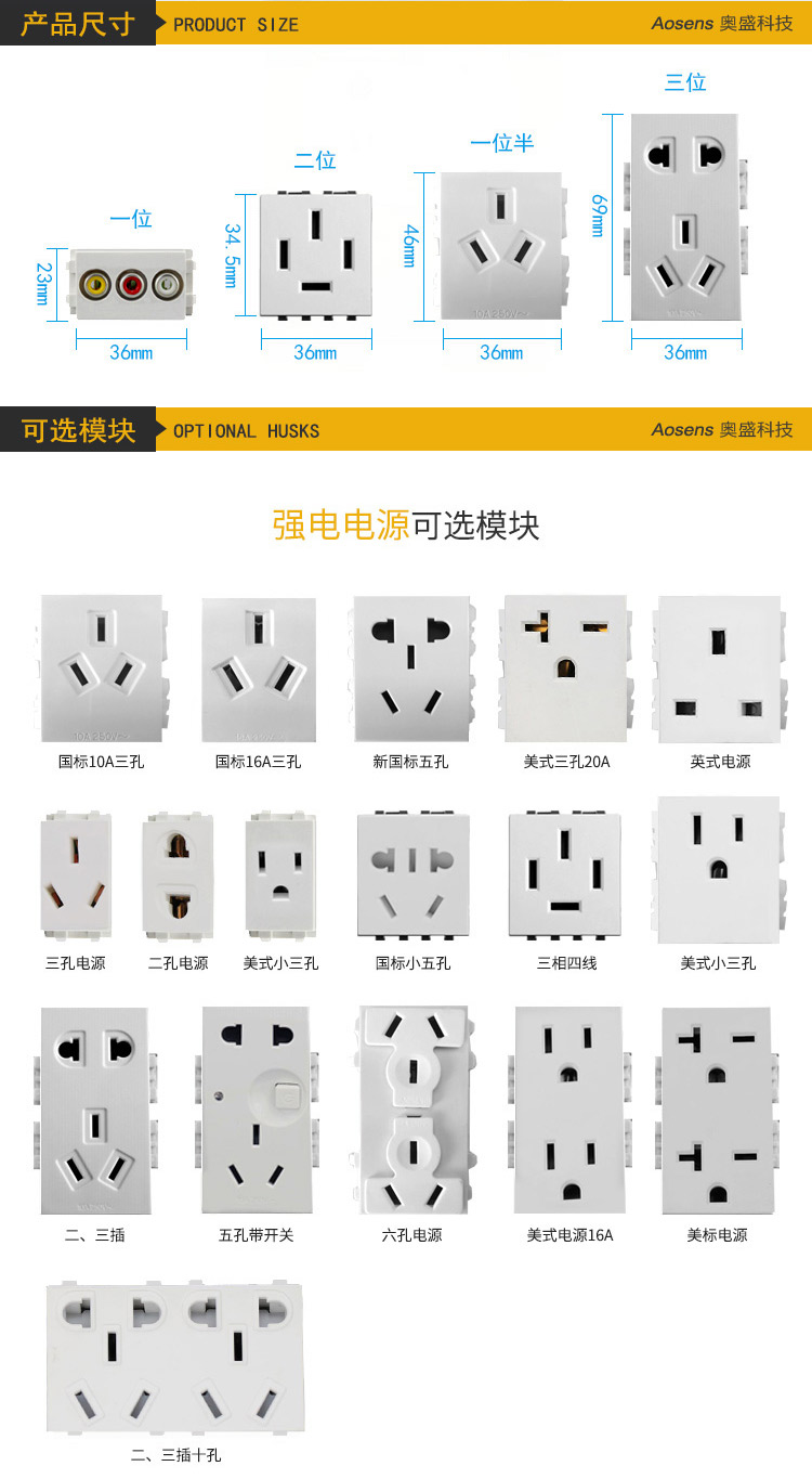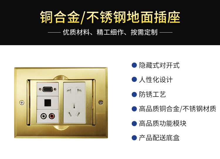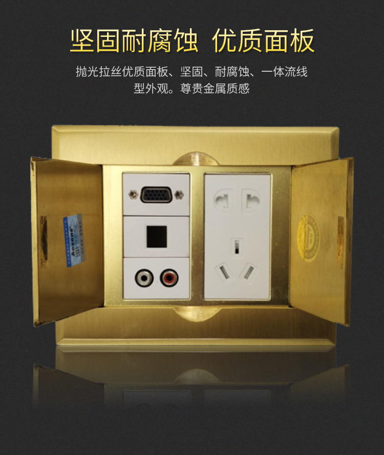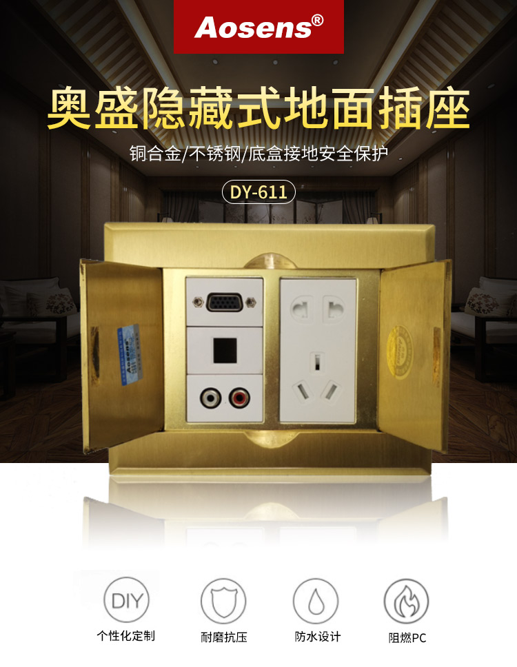 奥盛地插 空架插座 双门隐藏式铜合金带底盒 可装128模块12位弱电 AS-DY-611