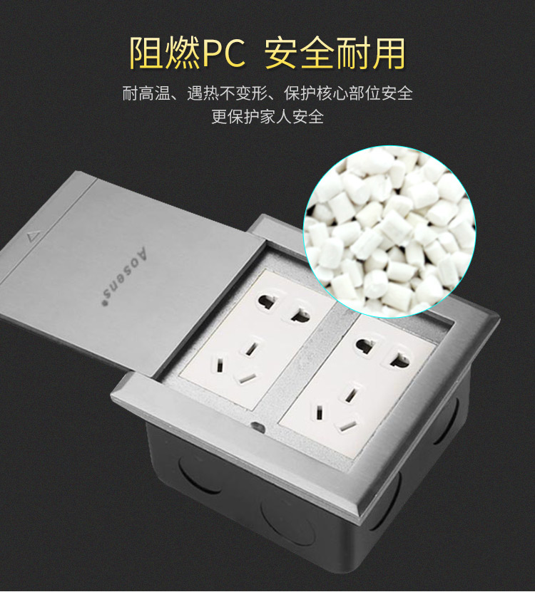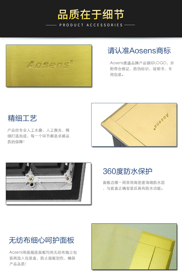 奥盛平推式不锈钢地面插座 6位弱电模块 可装两个五孔