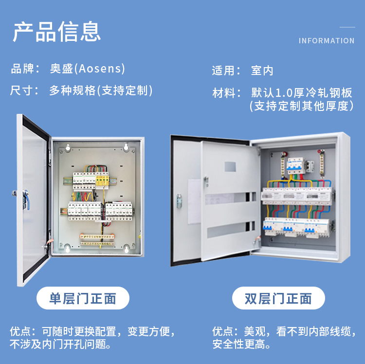 奥盛双层门配电箱室内外门明装壁挂基业箱控制箱 600*500*200mm 预付定金