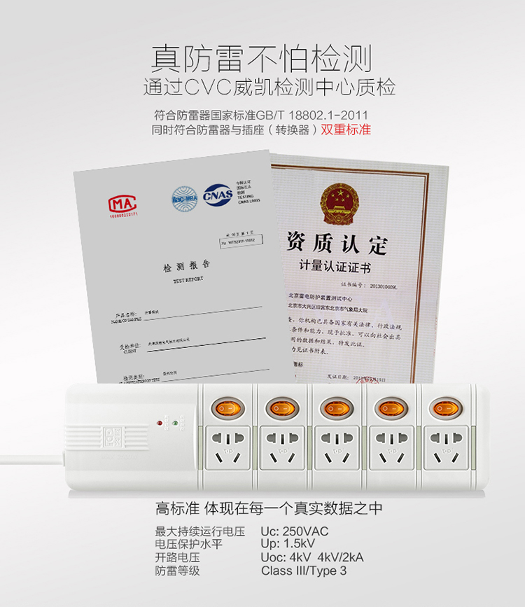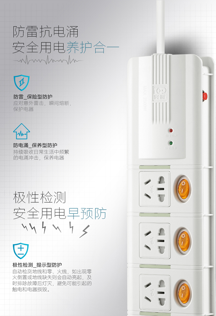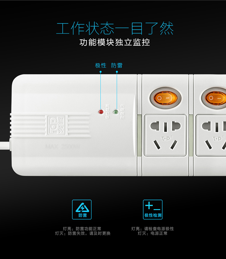 突破保镖五孔五开关插排插座接线板转换器防雷过载保护S5K5