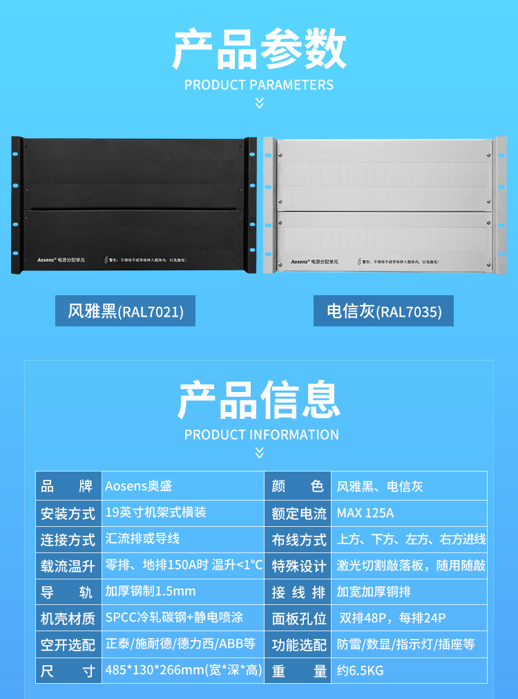 Aosens奥盛机房机架式6U配电箱配电单元配电盘19英寸分配箱列头柜 商业定制