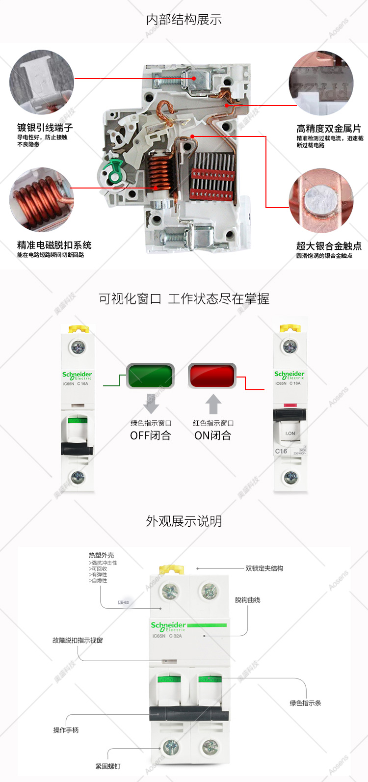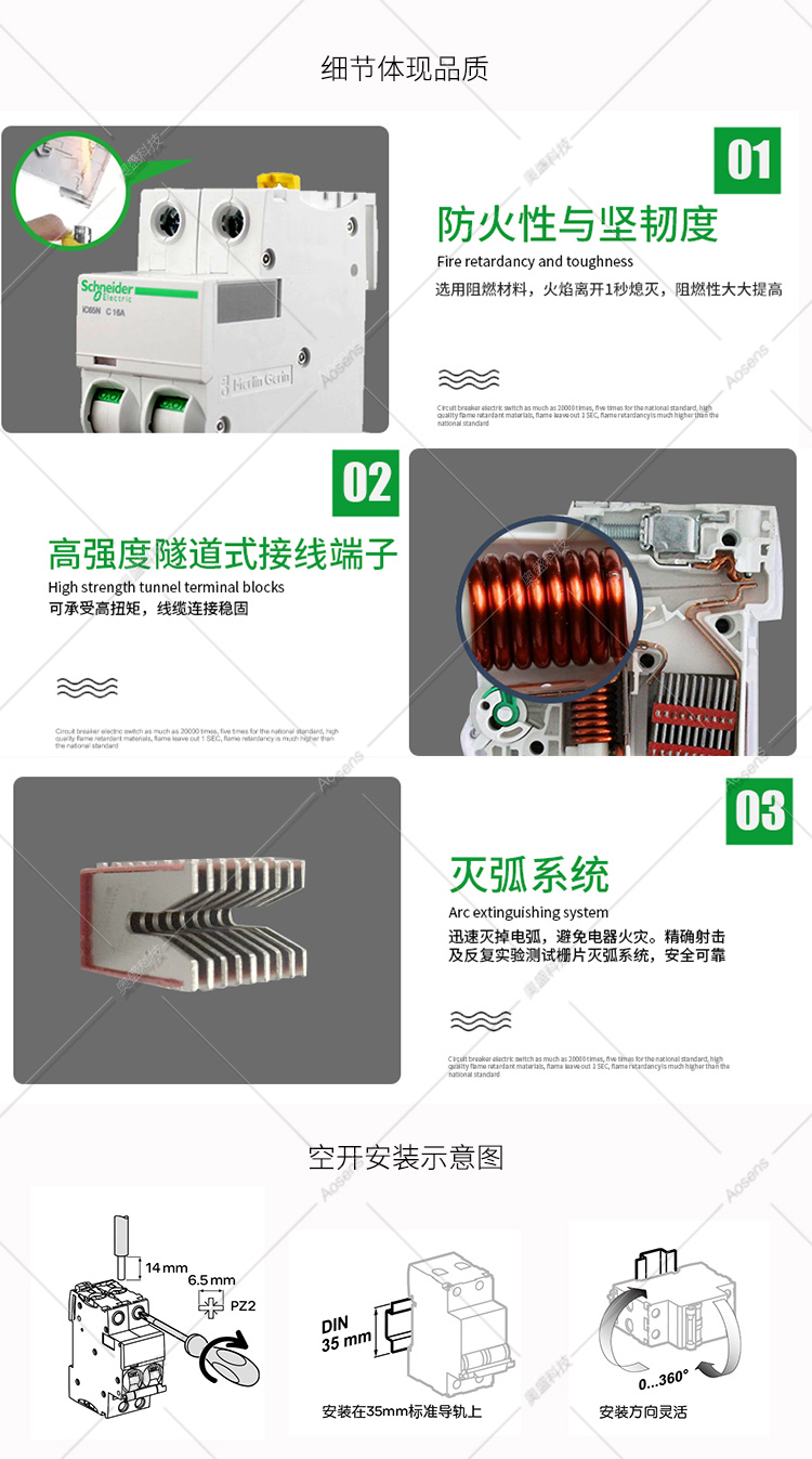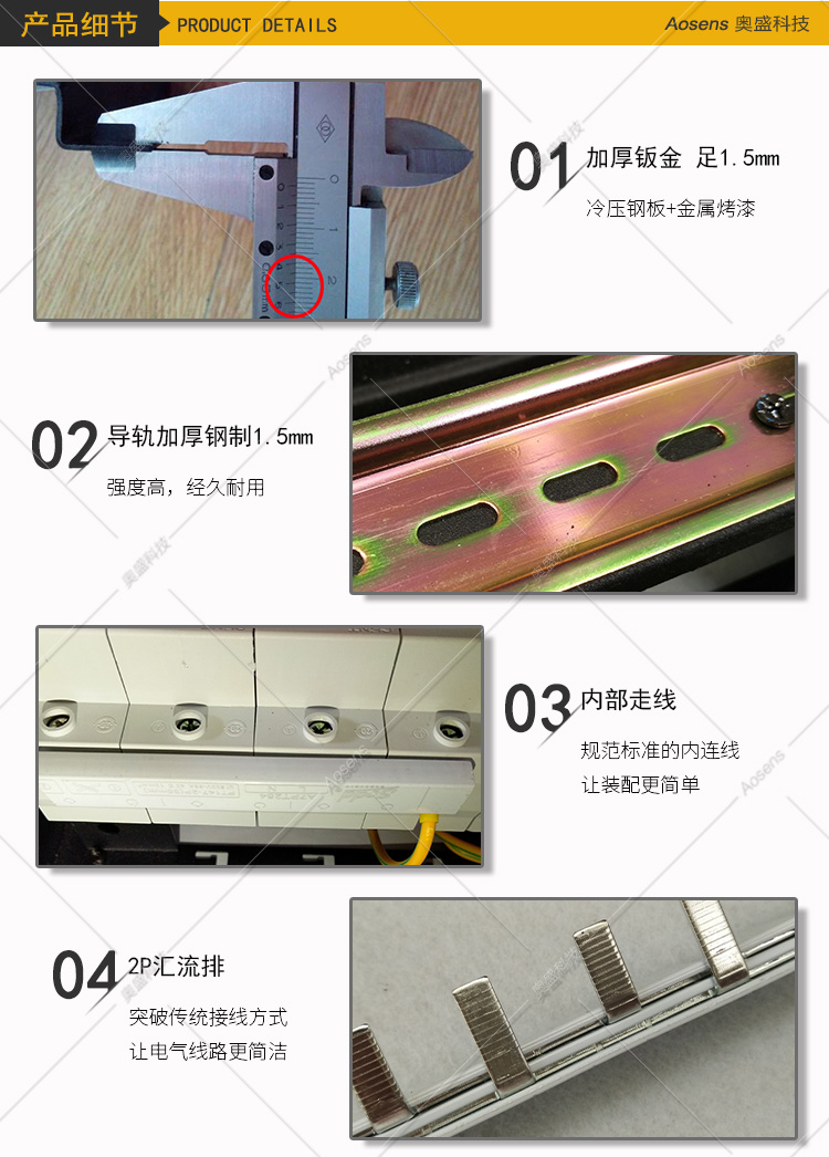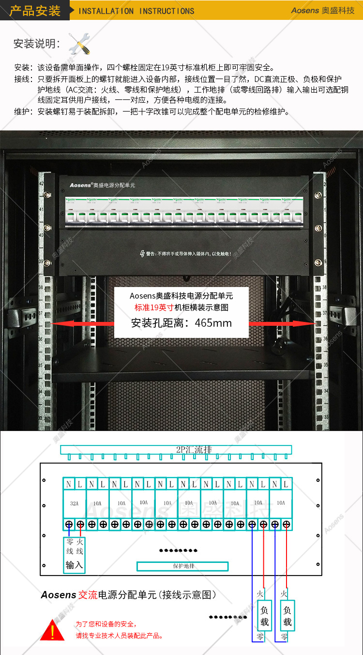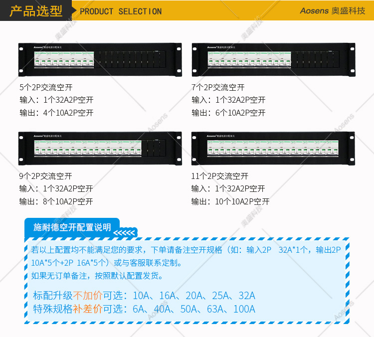 Aosens奥盛 2U平面板施耐德交流机柜配电单元PDU配电箱1P2P3P空开断路器单路架顶电源单路架顶电源