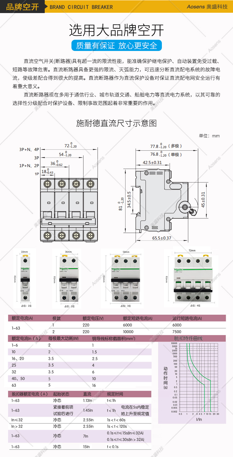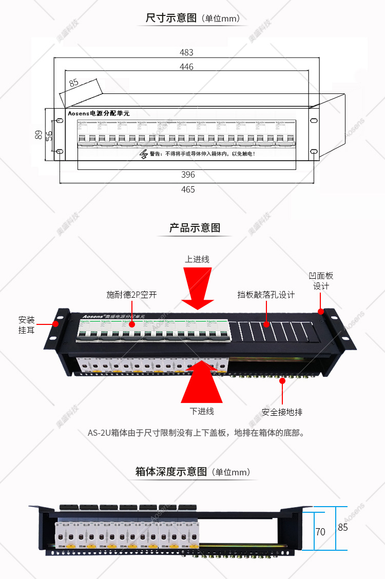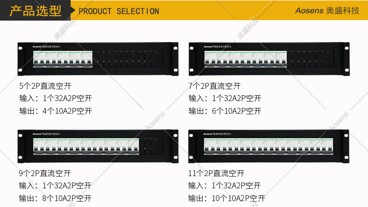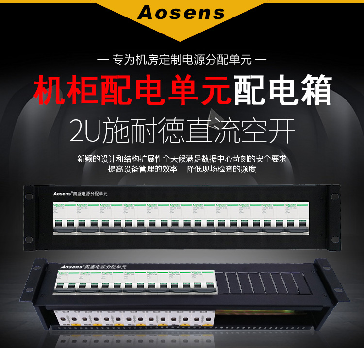 Aosens奥盛 2U平面板施耐德220V直流机柜配电单元PDU配电箱1P2P3P空开断路器单路架顶电源单路架顶电源