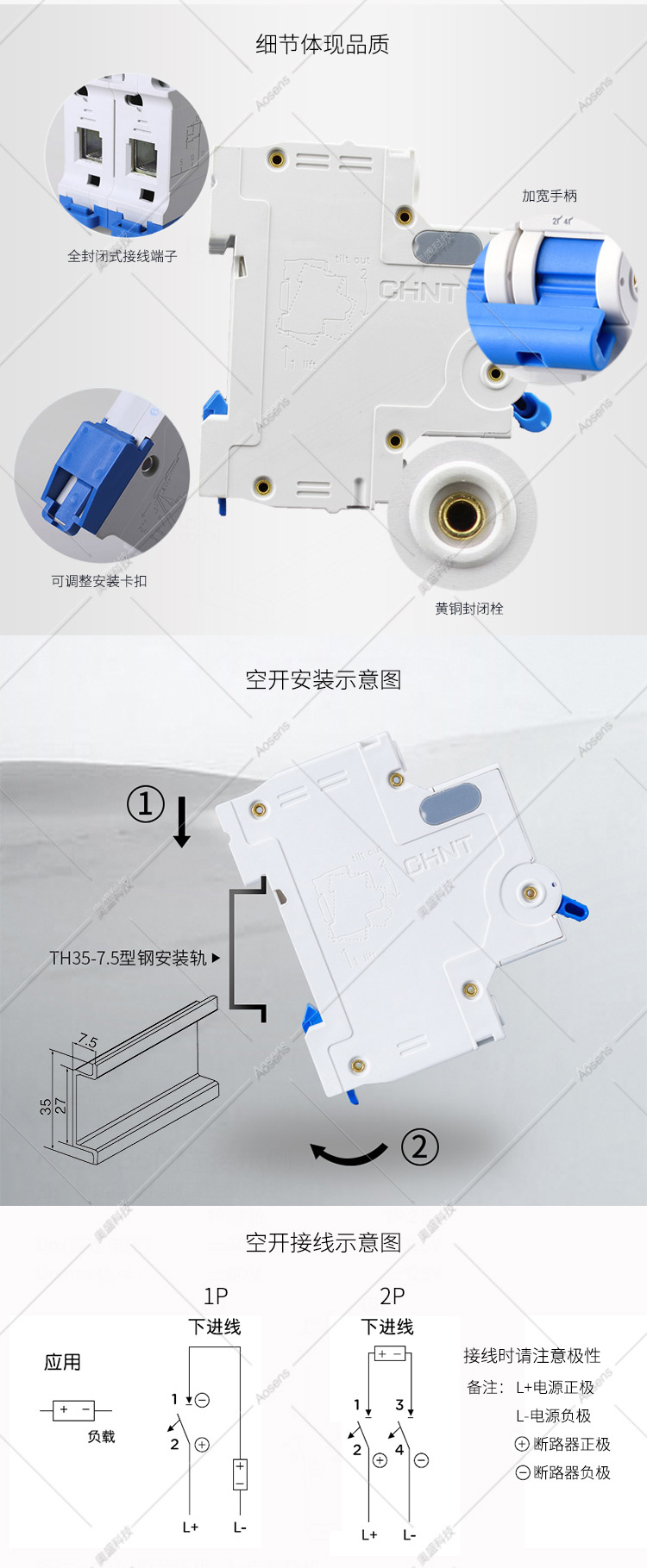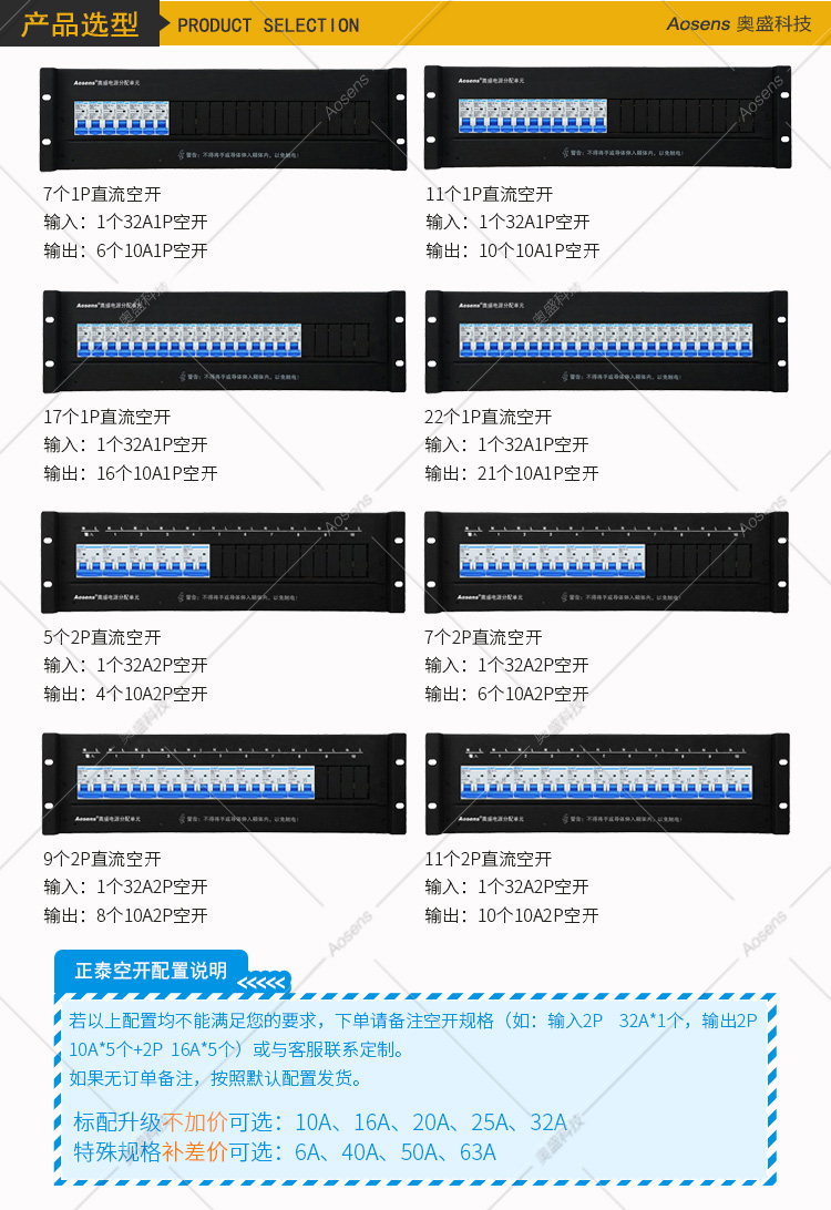 Aosens奥盛 3U正泰直流机柜配电单元PDU配电箱1P2P空开断路器单路架顶电源箱