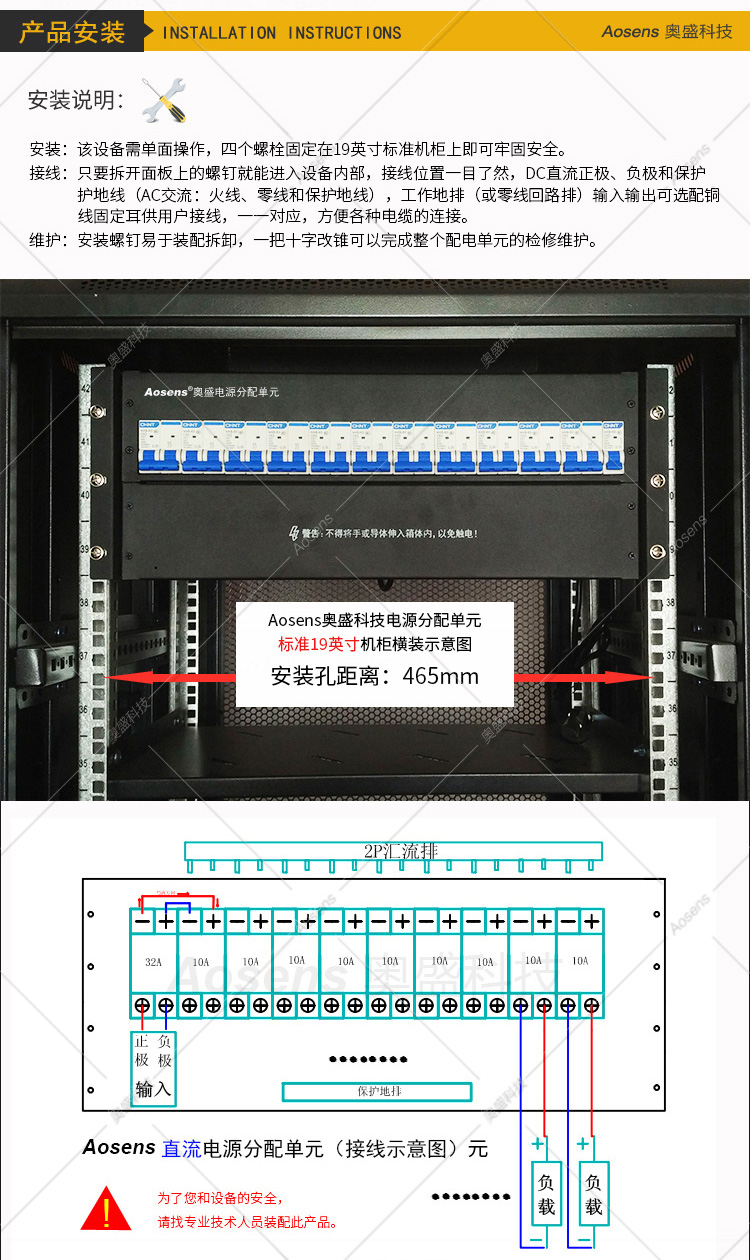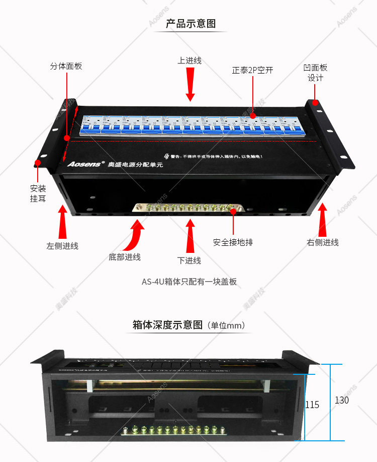 Aosens奥盛 4U正泰直流机柜配电单元PDU配电箱 1P2P3P空开断路器单路架顶电源箱
