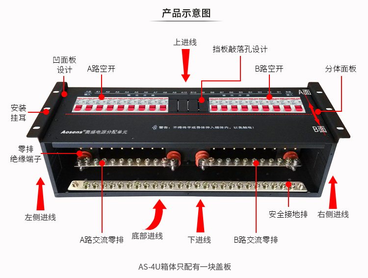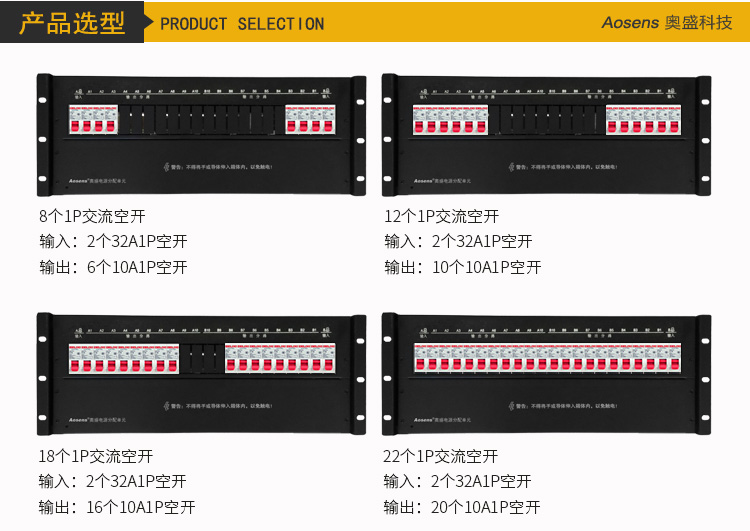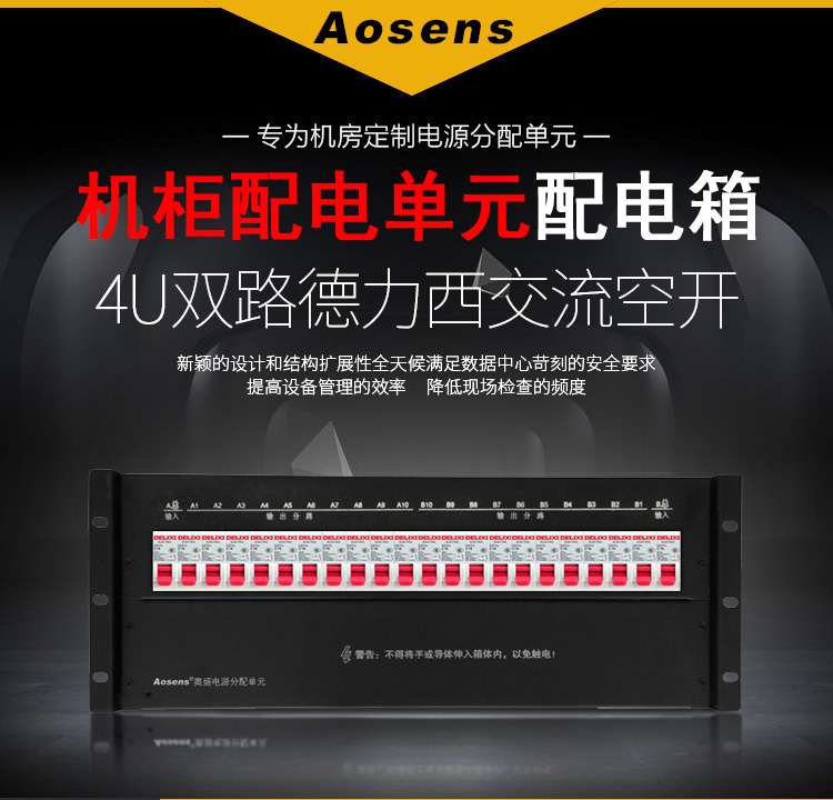 Aosens奥盛 4U德力西双路交流机柜配电单元断路器1P2P空开PDU配电箱电源箱