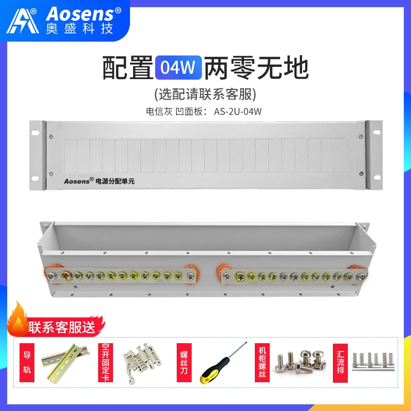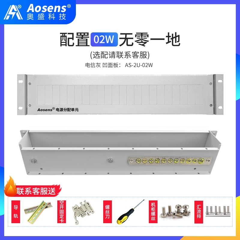 Aosens奥盛2U机架式电源分配单元 19英寸水平安装电信灰