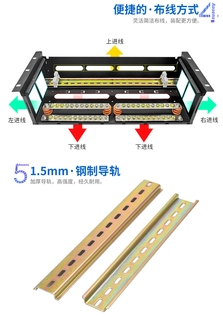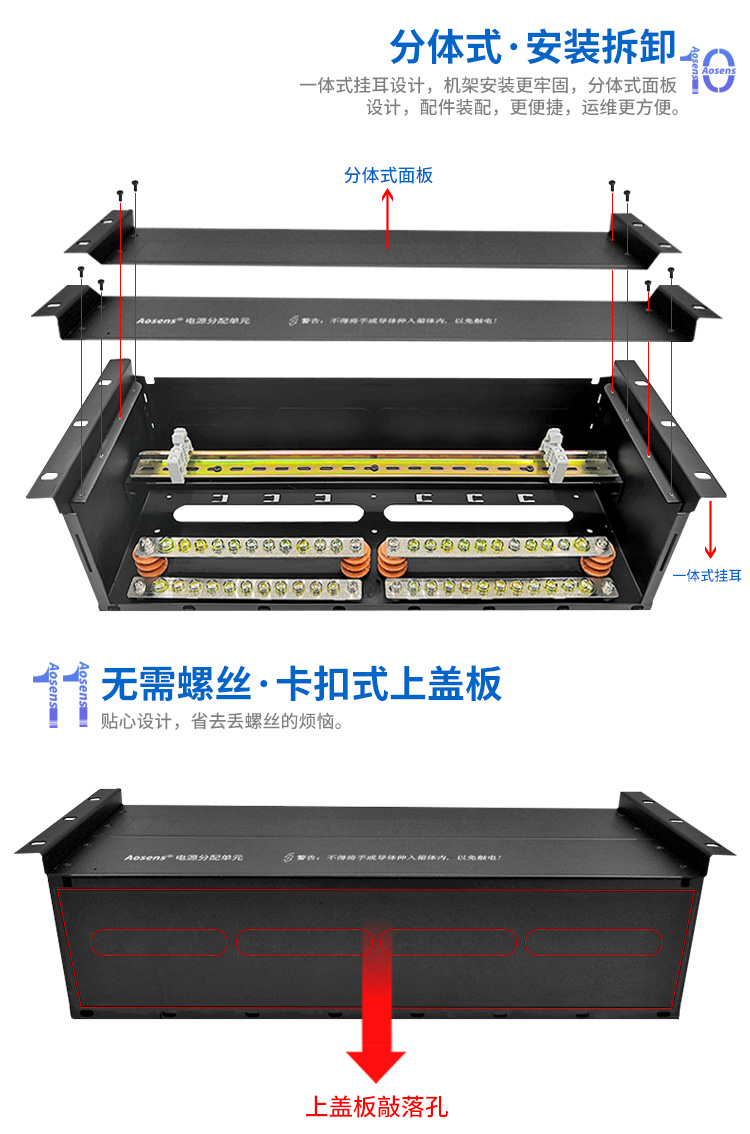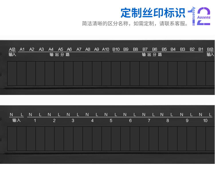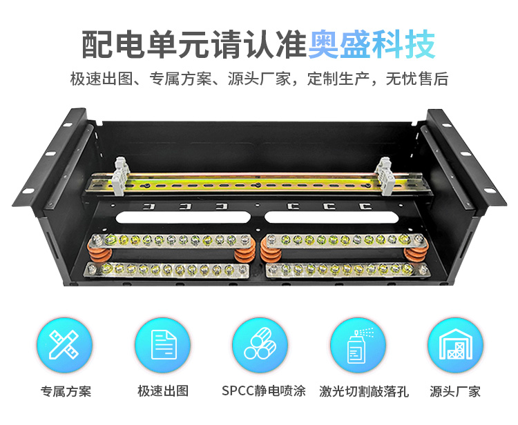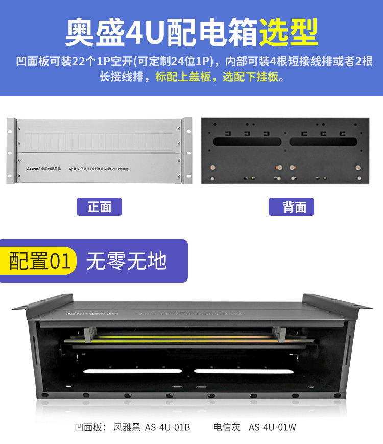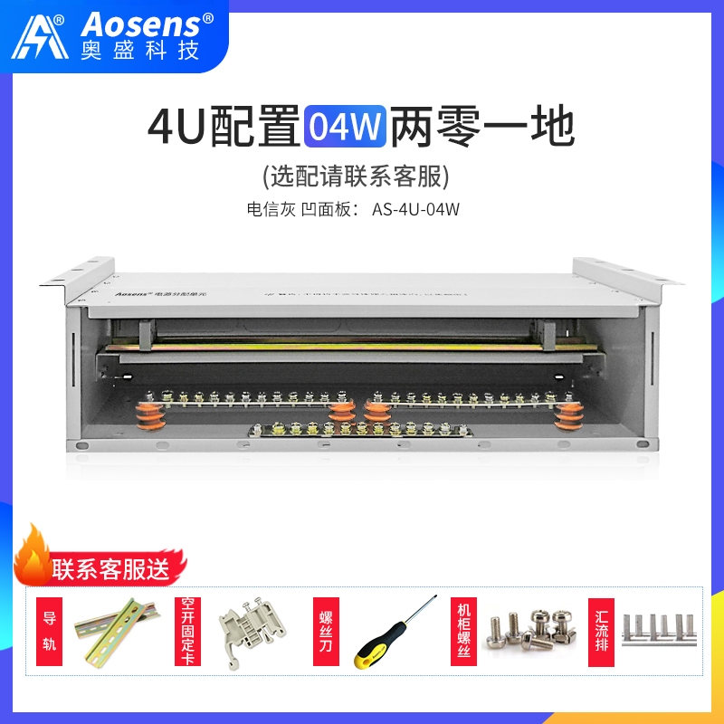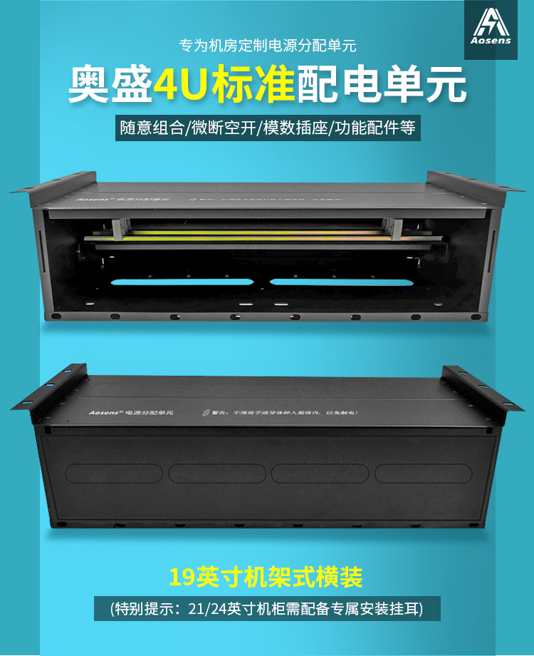 Aosens奥盛 4U机柜配电单元19英寸专用列头柜机架式配电箱风雅黑