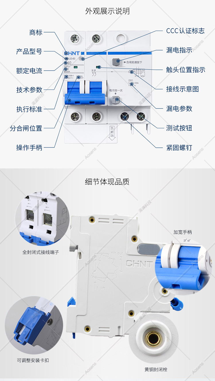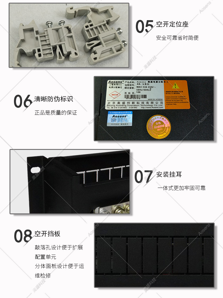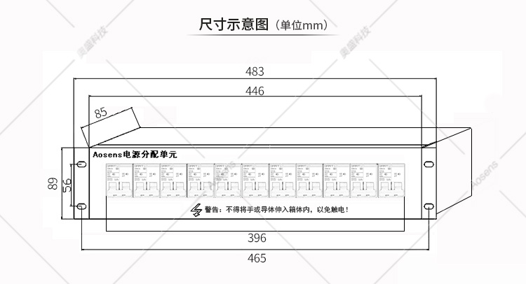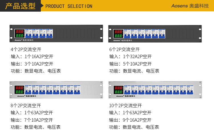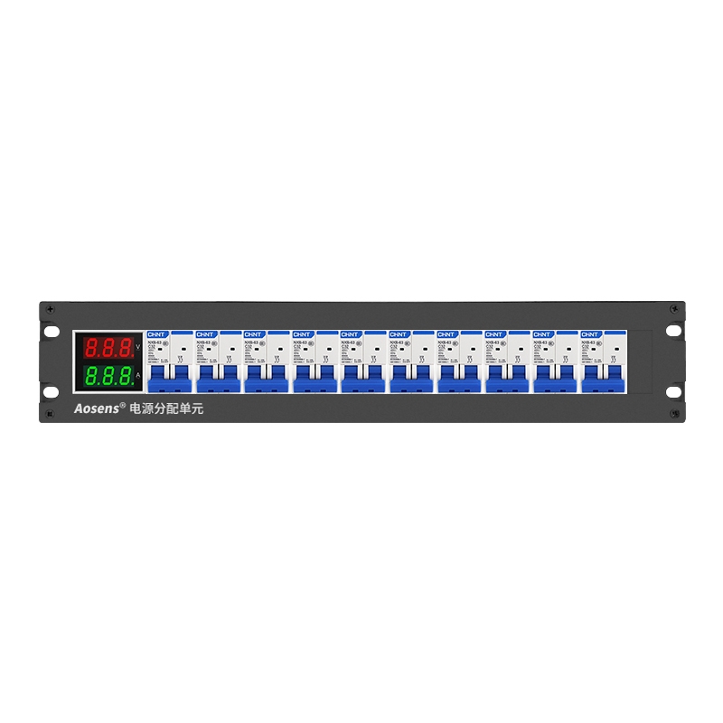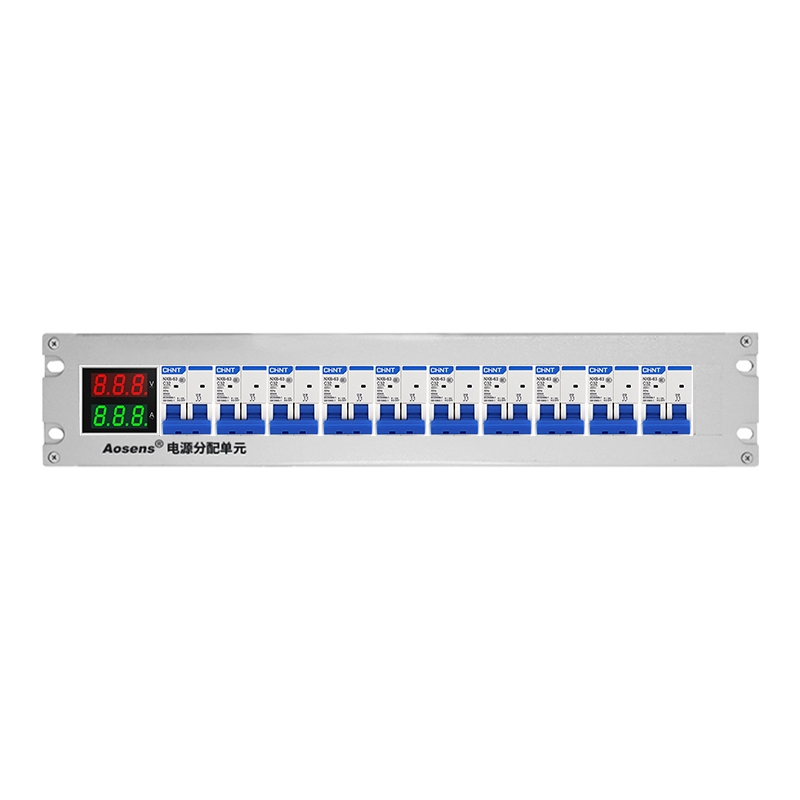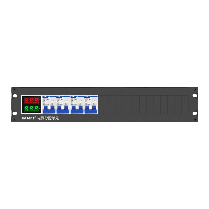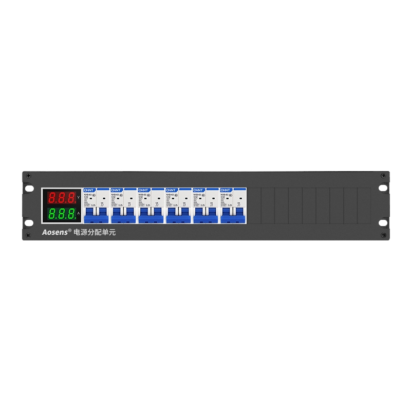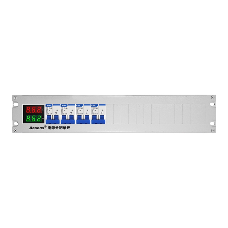 Aosens奥盛 机柜配电单元 2U配电箱机架式 交流2P空开 电流电压表 单路