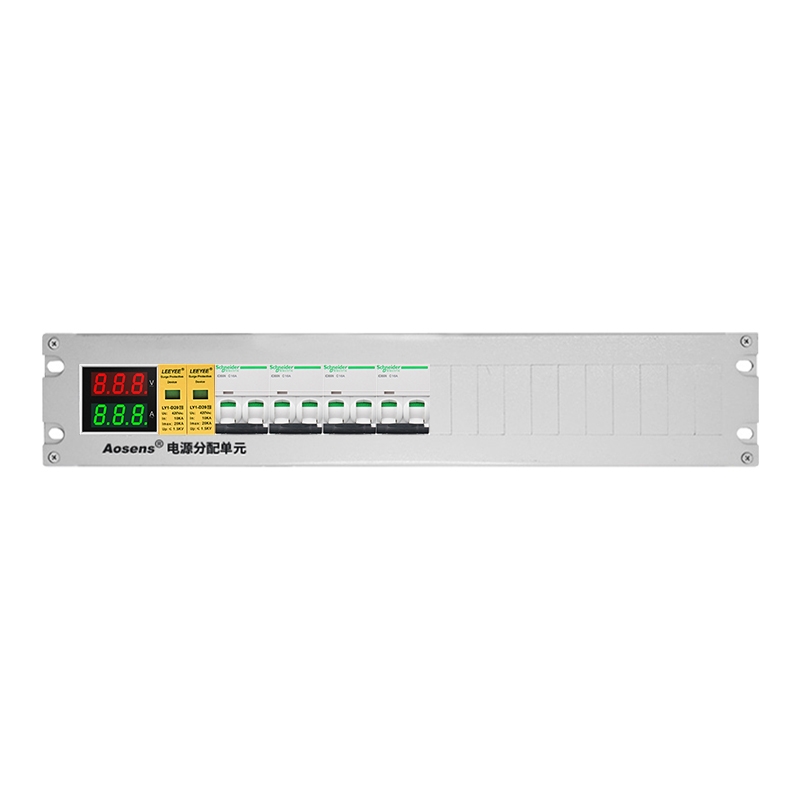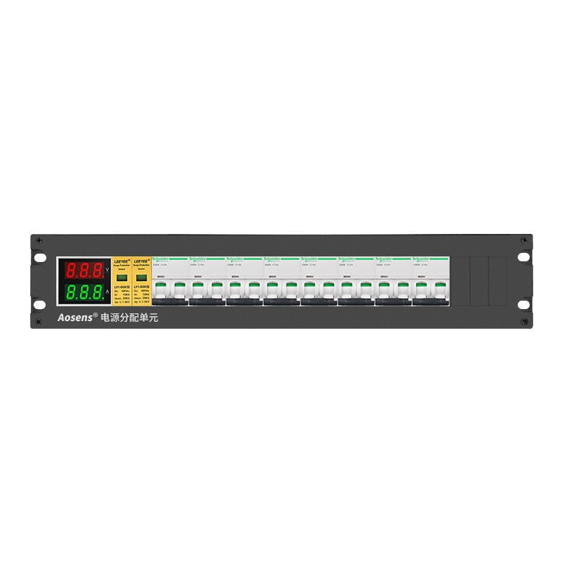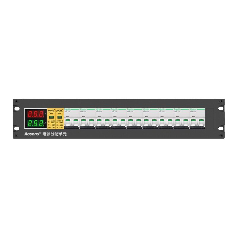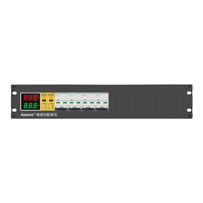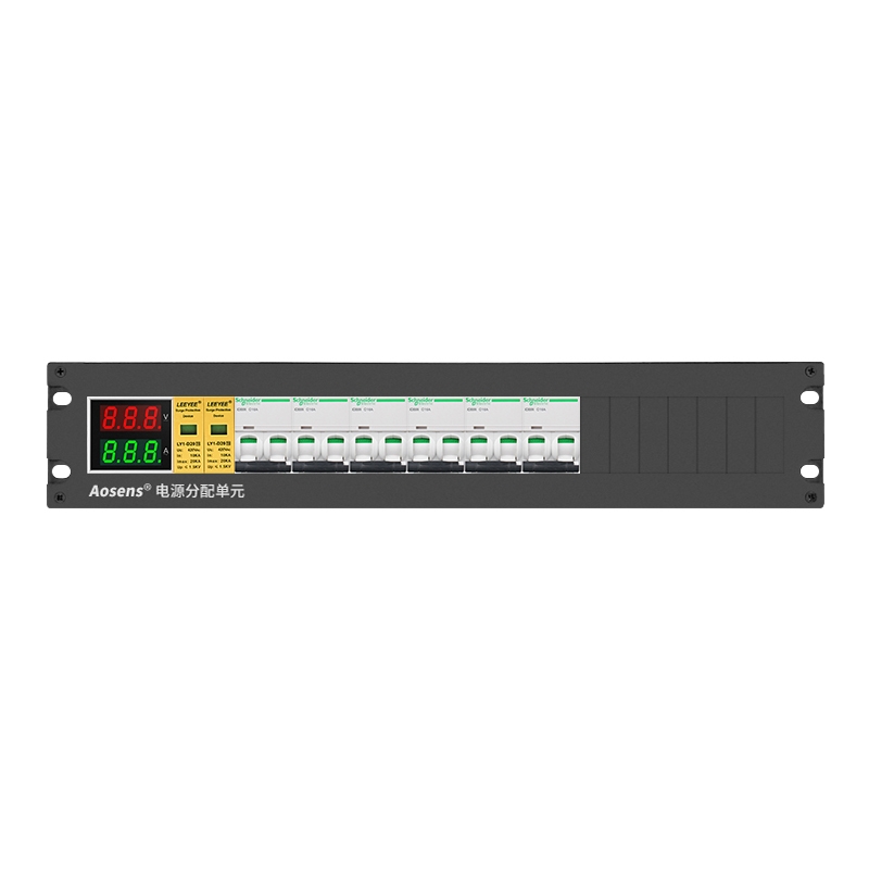 Aosens奥盛机柜配电单元 2U配电箱机架式交流2P空开电流电压表防雷单路