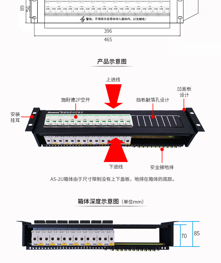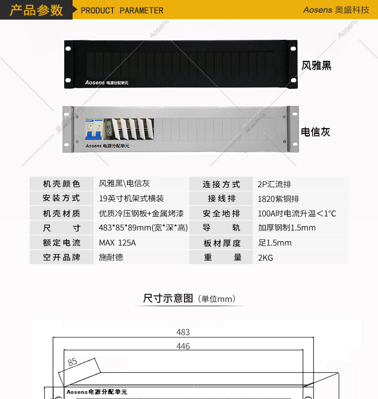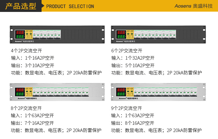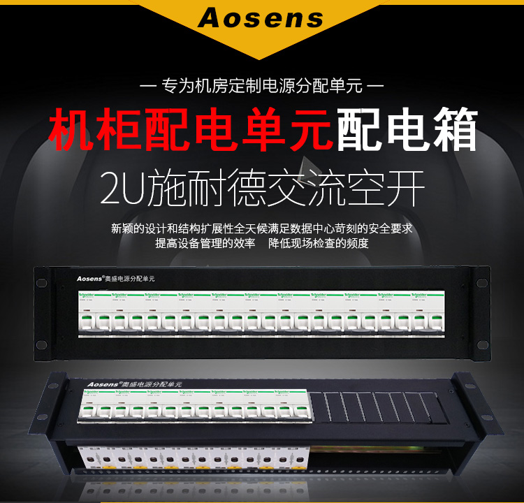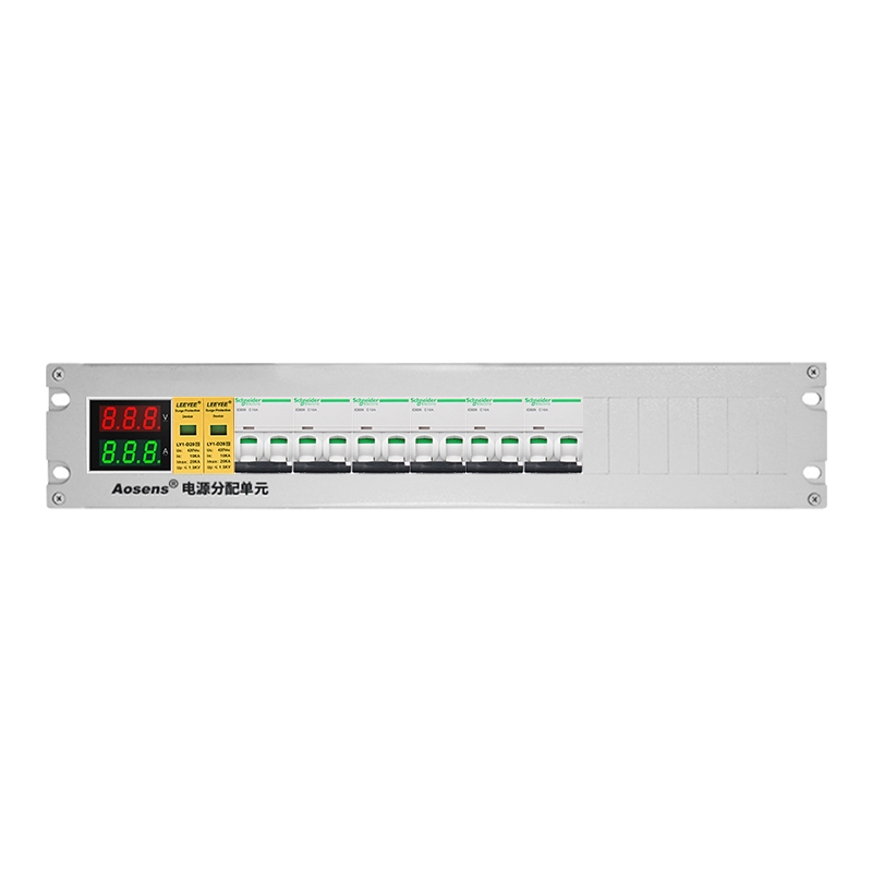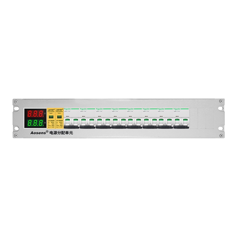 Aosens奥盛机柜配电单元 2U配电箱机架式交流2P空开电流电压表防雷单路
