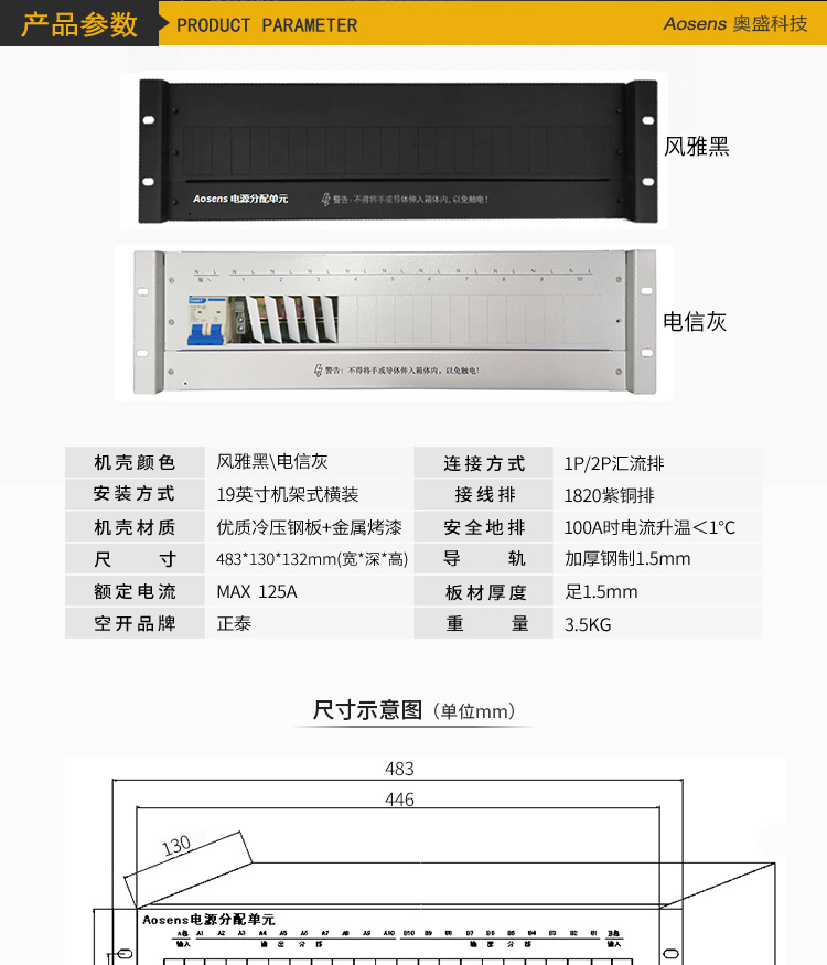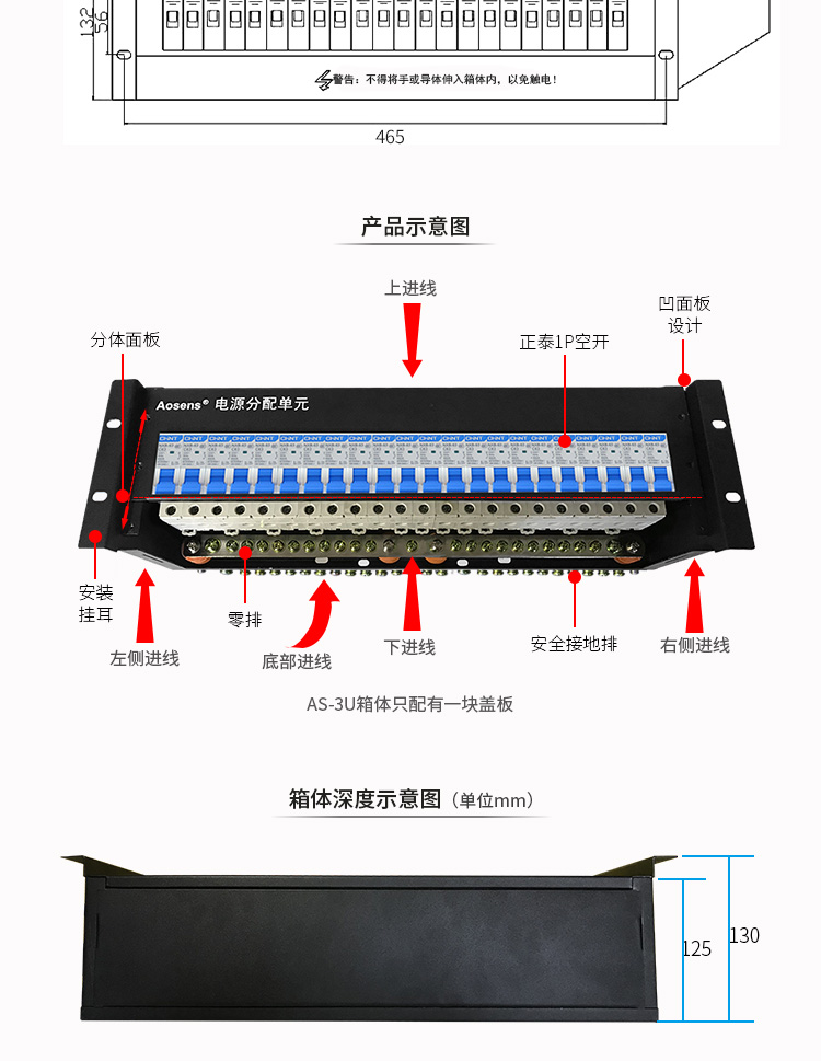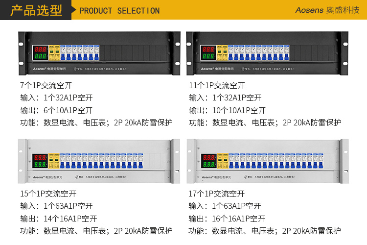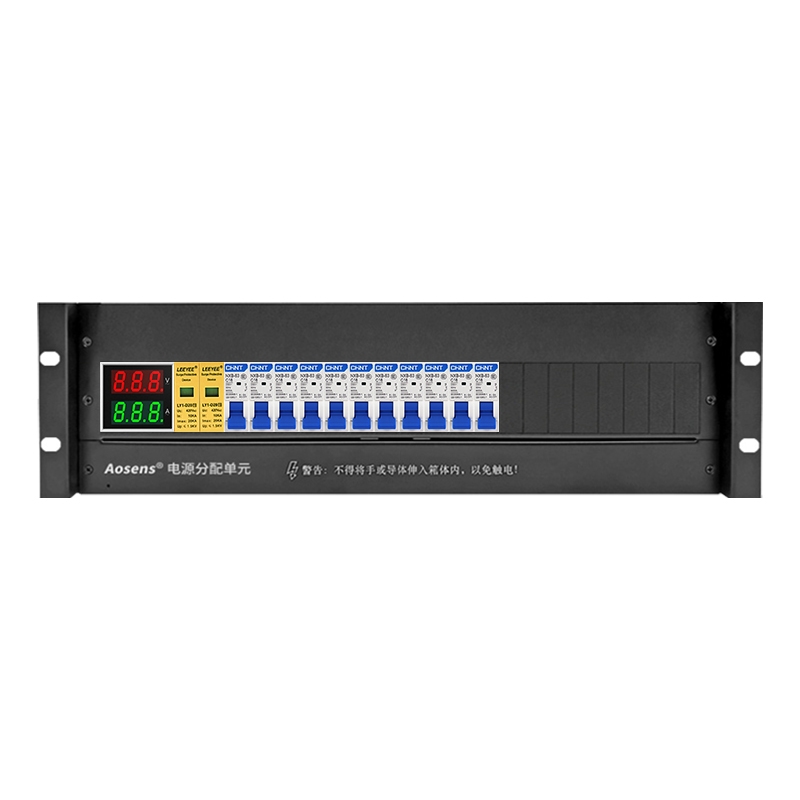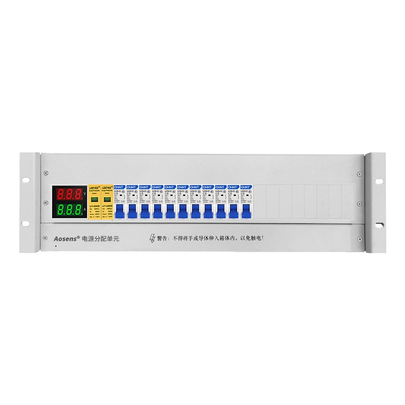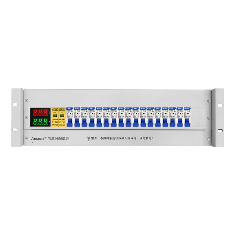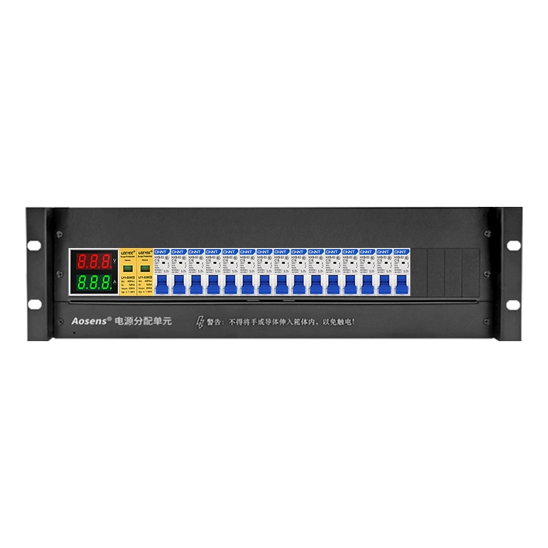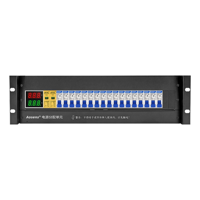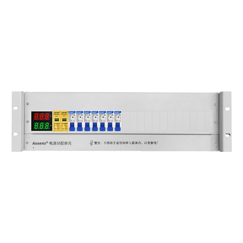 Aosens奥盛 机柜配电单元 3U配电箱机架式 交流1P空开电流电压表防雷单路