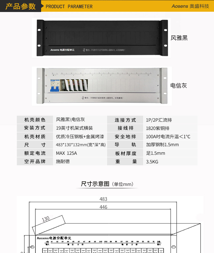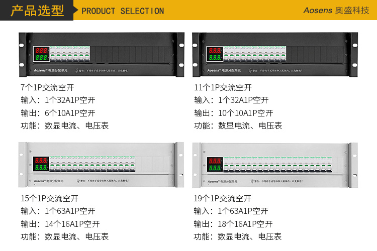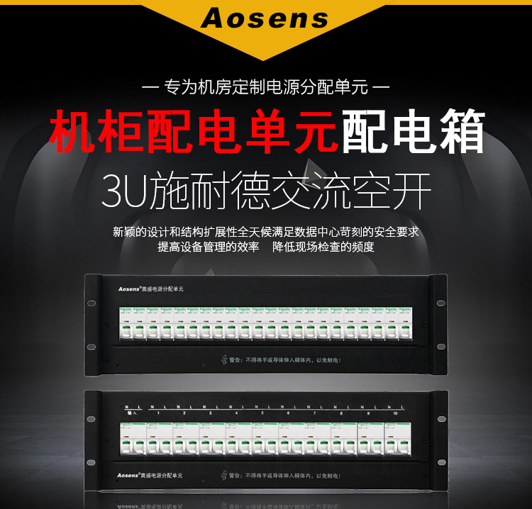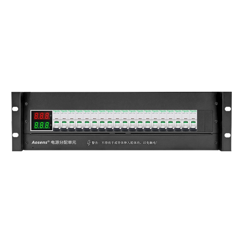 Aosens奥盛 机柜配电单元PDU 3U配电箱施耐德交流1P空开 电流电压表单路