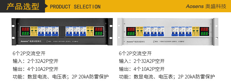 Aosens奥盛 机柜配电单元PDU3U配电箱 施耐德交流2P空开电流电压防雷双路