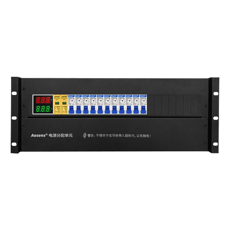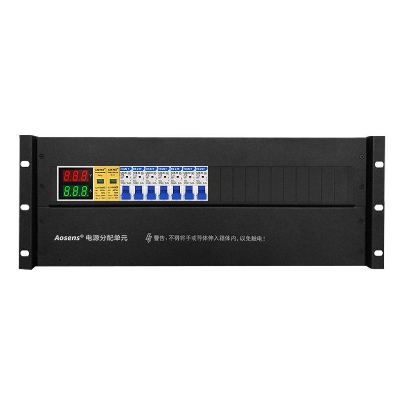 Aosens奥盛 机柜配电单元PDU4U配电箱 正泰交流1P空开防雷电流电压表单路