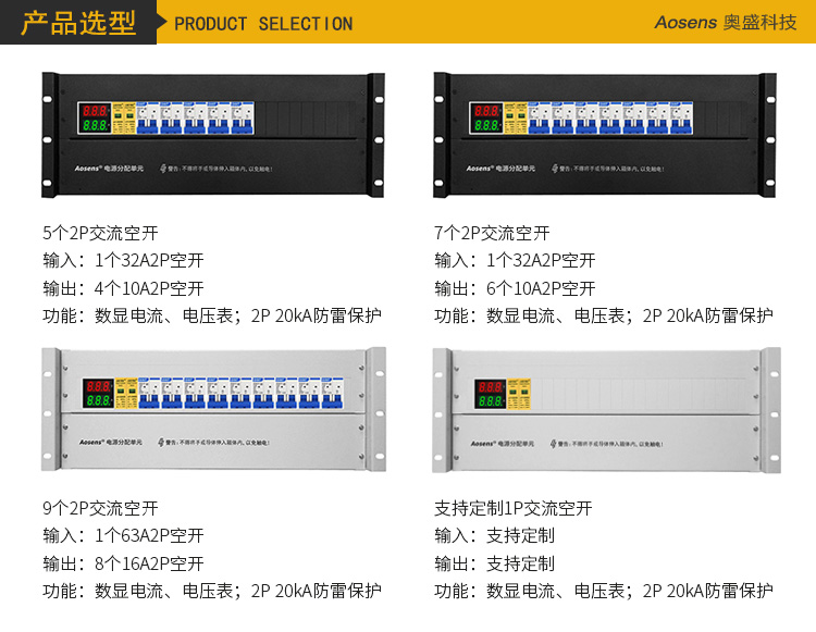 Aosens奥盛 机柜配电单元PDU4U配电箱正泰交流2P空开防雷电流电压表 单路