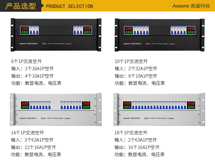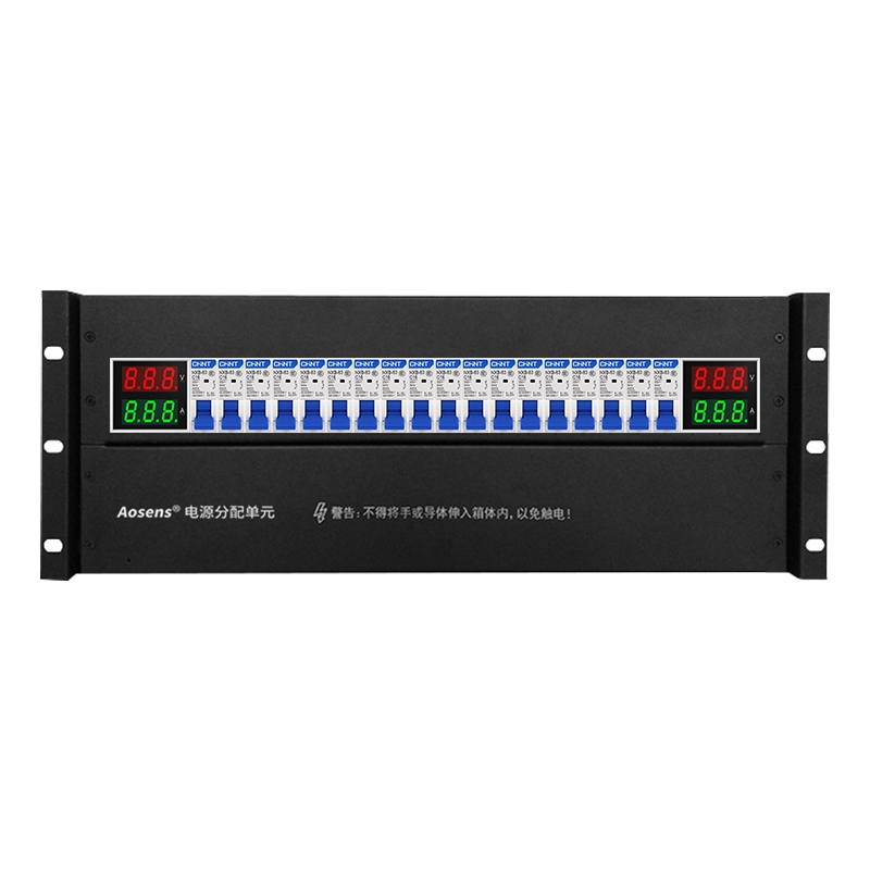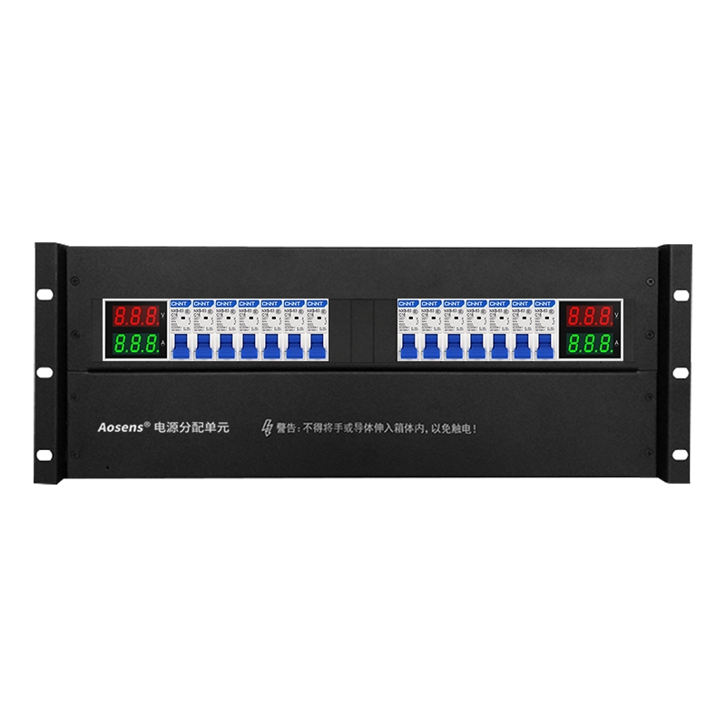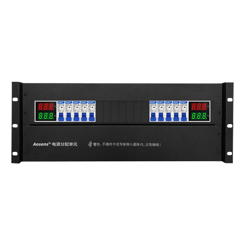 Aosens奥盛 机柜配电单元 4U配电箱机架式交流1P空开电流电压表 双路