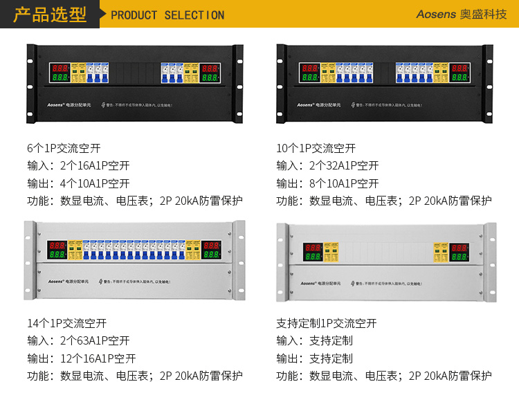Aosens奥盛 4U配电箱机柜配电单元PDU交流1P空开防雷电流电压双路