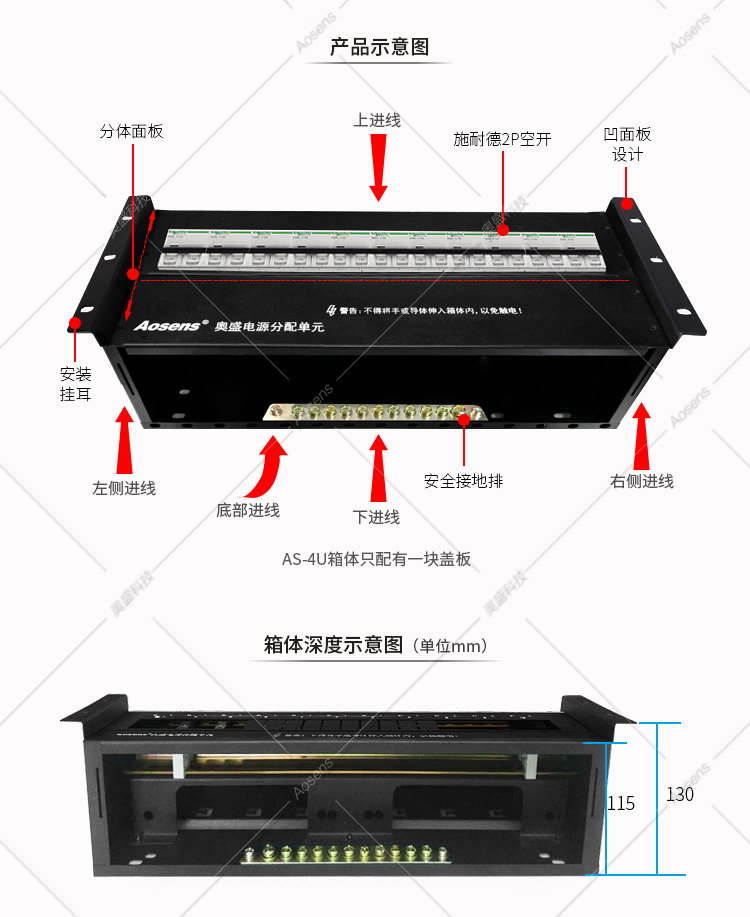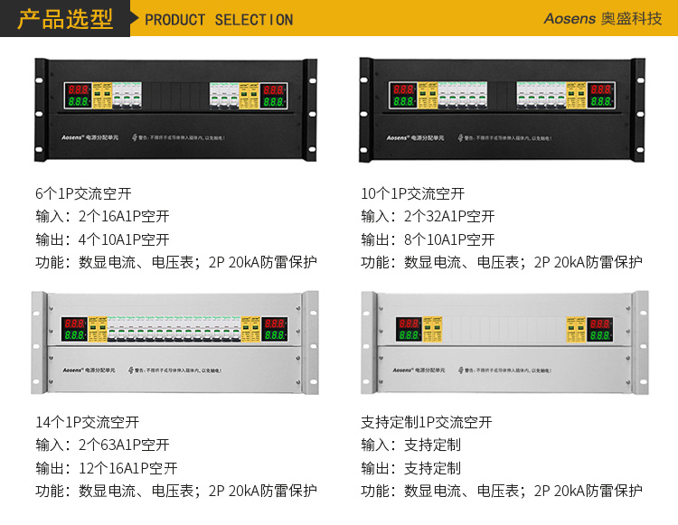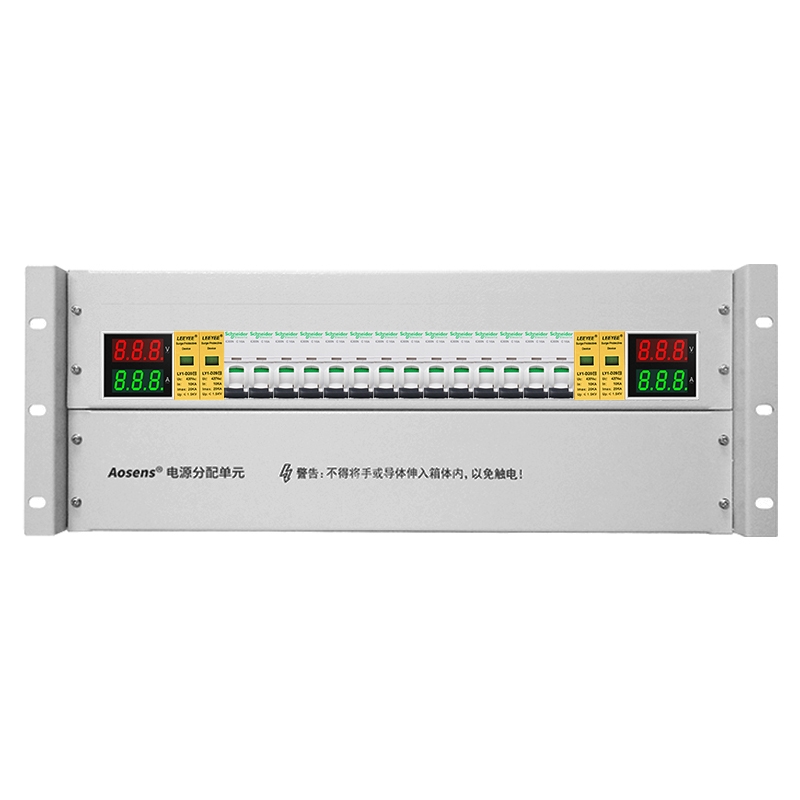Aosens奥盛 机柜配电单元4U机架式交流1P空开防雷电流电压表双路配电箱