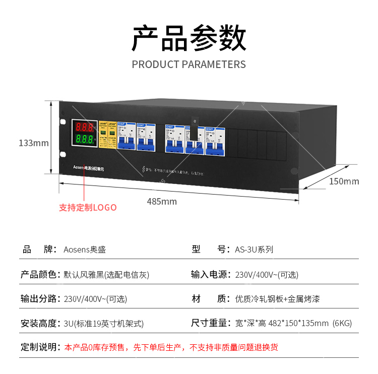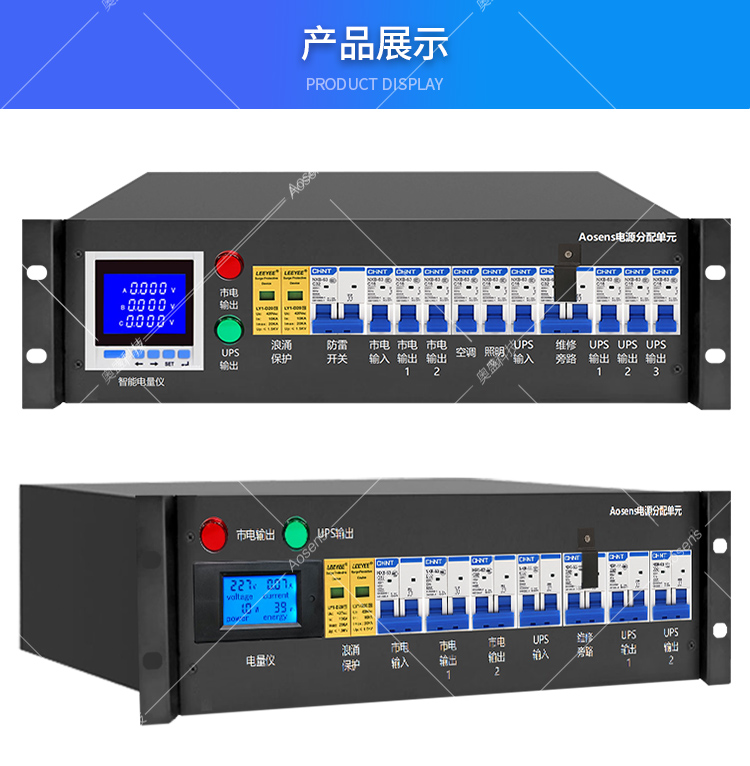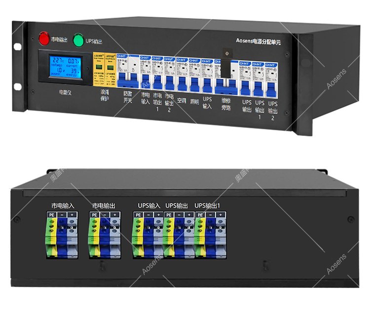 奥盛 UPS配电单元 3U配电箱机架式 电流电压表 2P20KA防雷保护