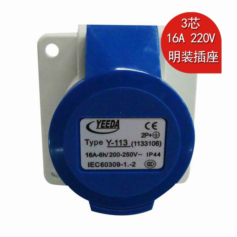 YEEDA怡达Y-113(1131106)明装工业插座 IP44单相三芯16A 220V防水插座